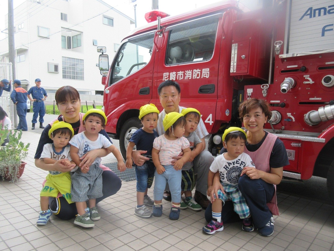 消防士さんも一緒にハイチーズ!かっこよかったね!