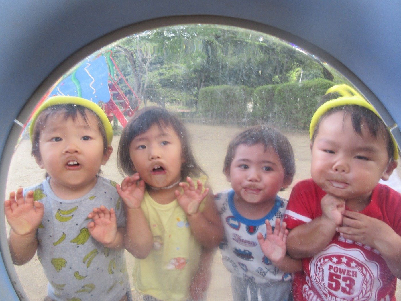 園でシャワーをしながら、泥んこパックの子ども達の可愛さに思わず微笑んでしまいました。