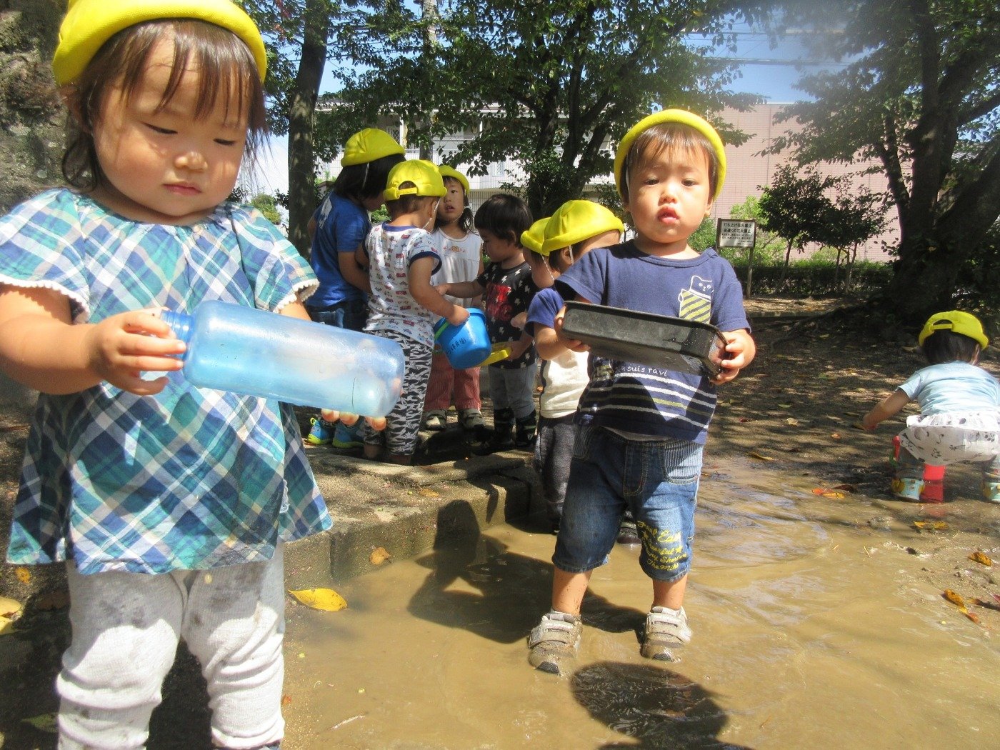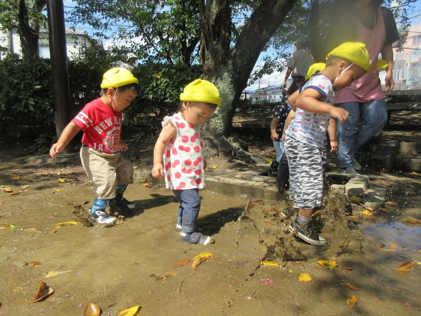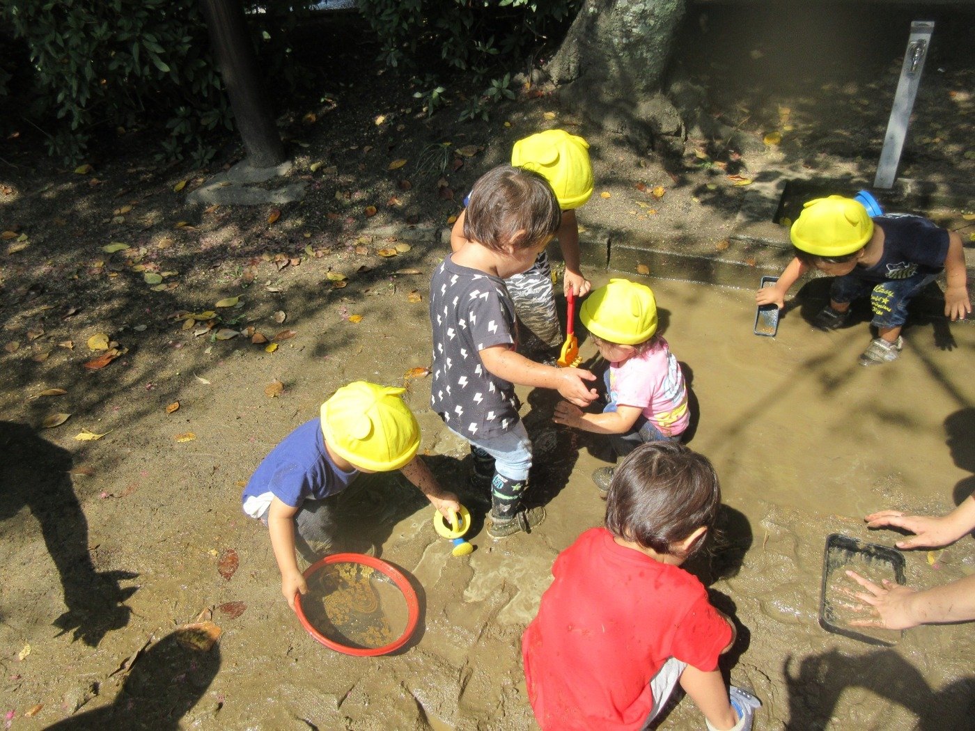 そのうちに、バチャバチャ!ジャブジャブ!キャー!と大胆に泥んこ遊びを楽しんでいましたよ。