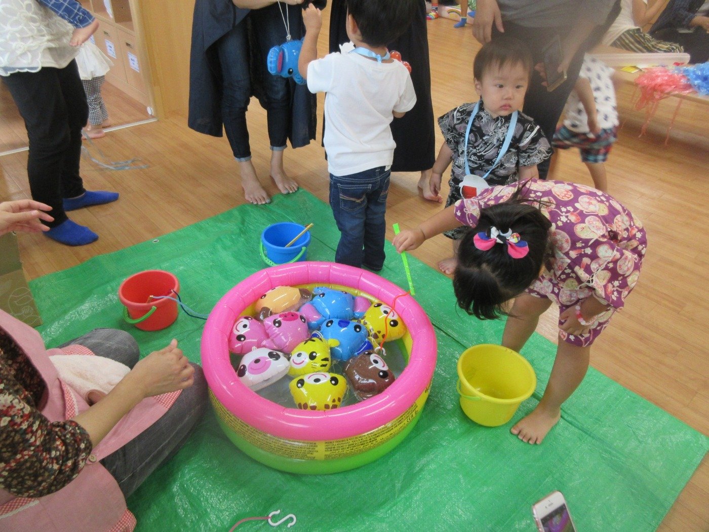 アニマルヨーヨー釣りでは、「ライオン!」「ウサギ!」と