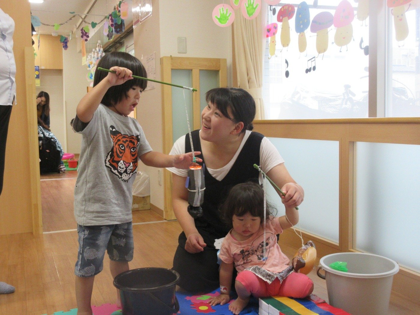 魚釣りでは、釣るのに苦戦しているお友達や、