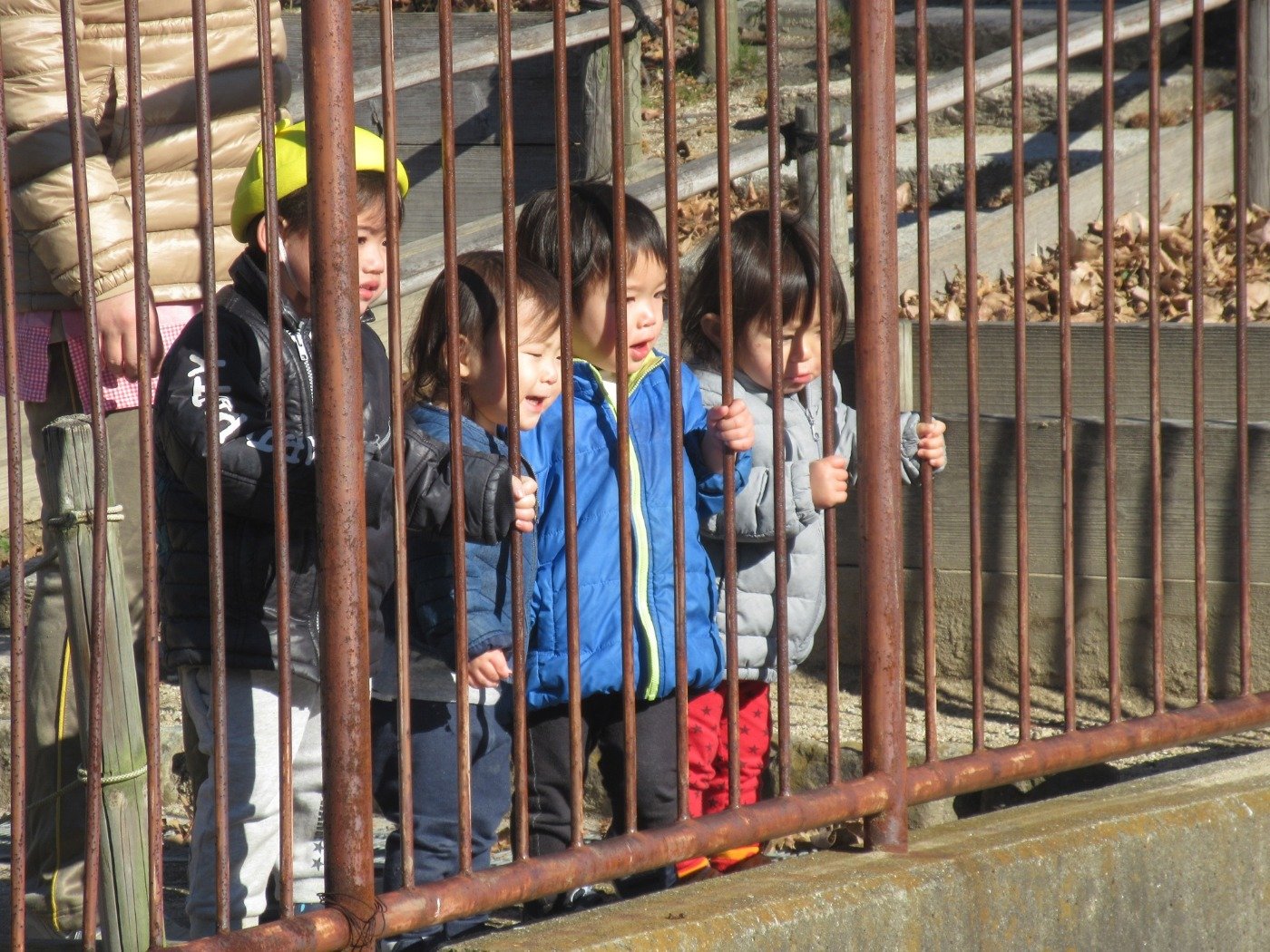 「おーい」「バイバーイ」一斉に口々に話すので、シラサギも戸惑い気味(?)