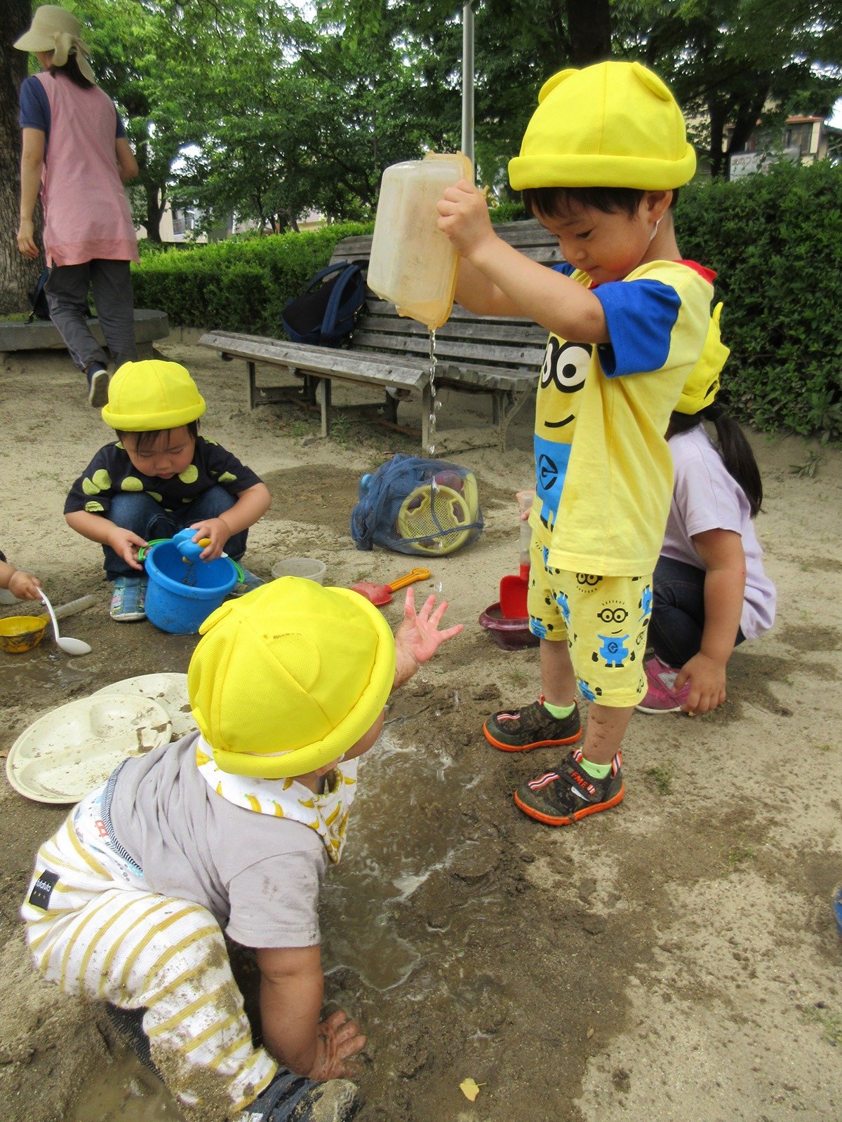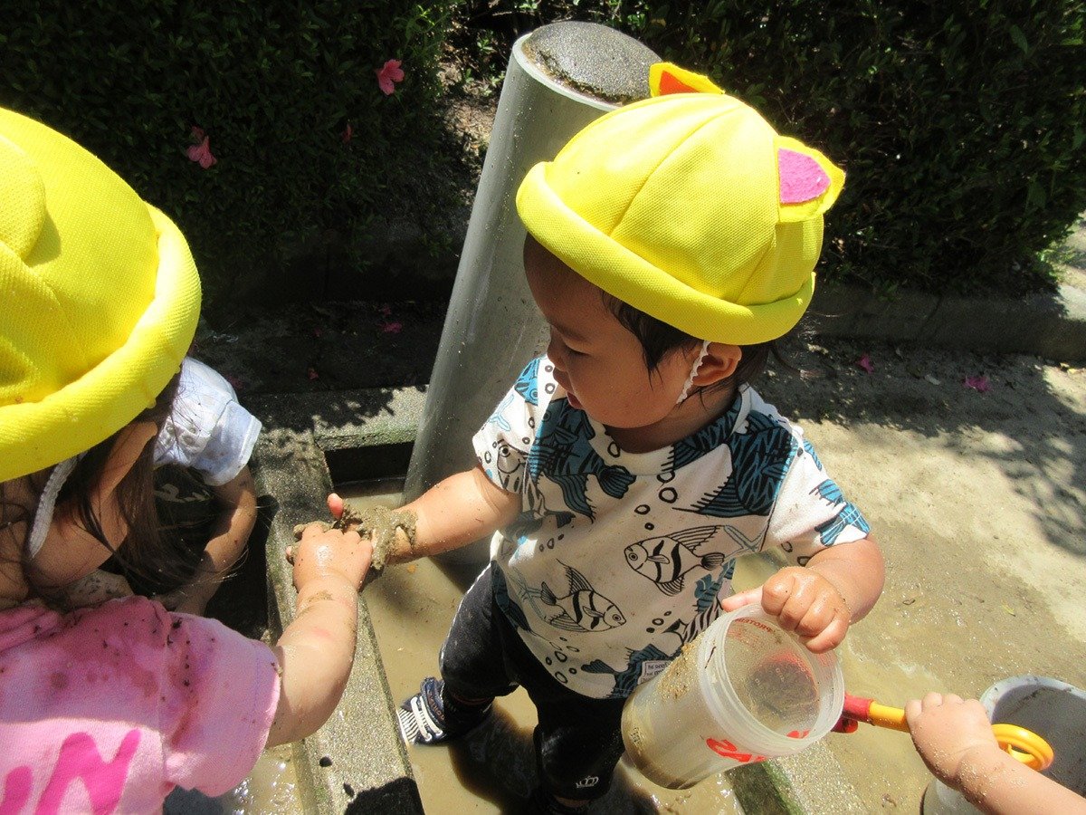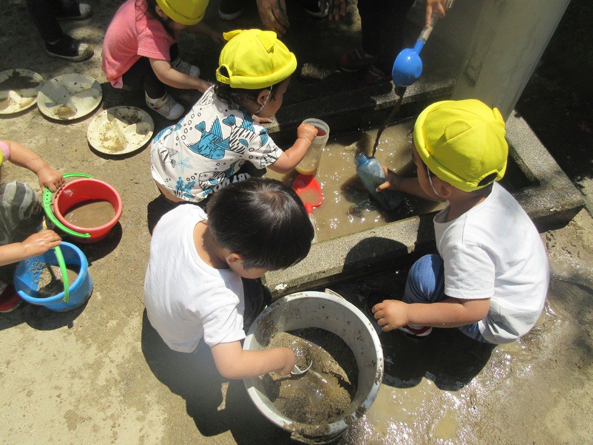 暑い日は「今日はどろんこするかな…」と覚悟?をしてくれているお母様もいらっしゃるようで、いつもありがとうございます。