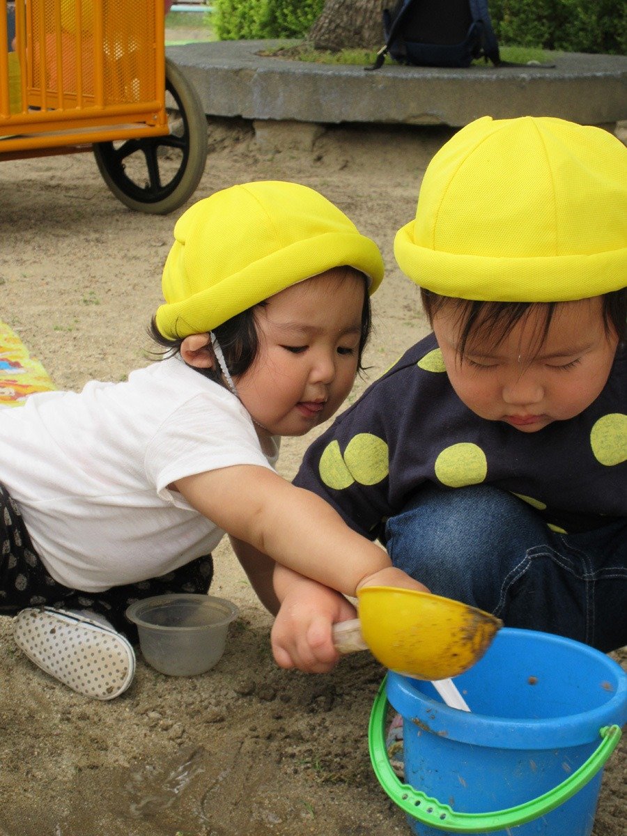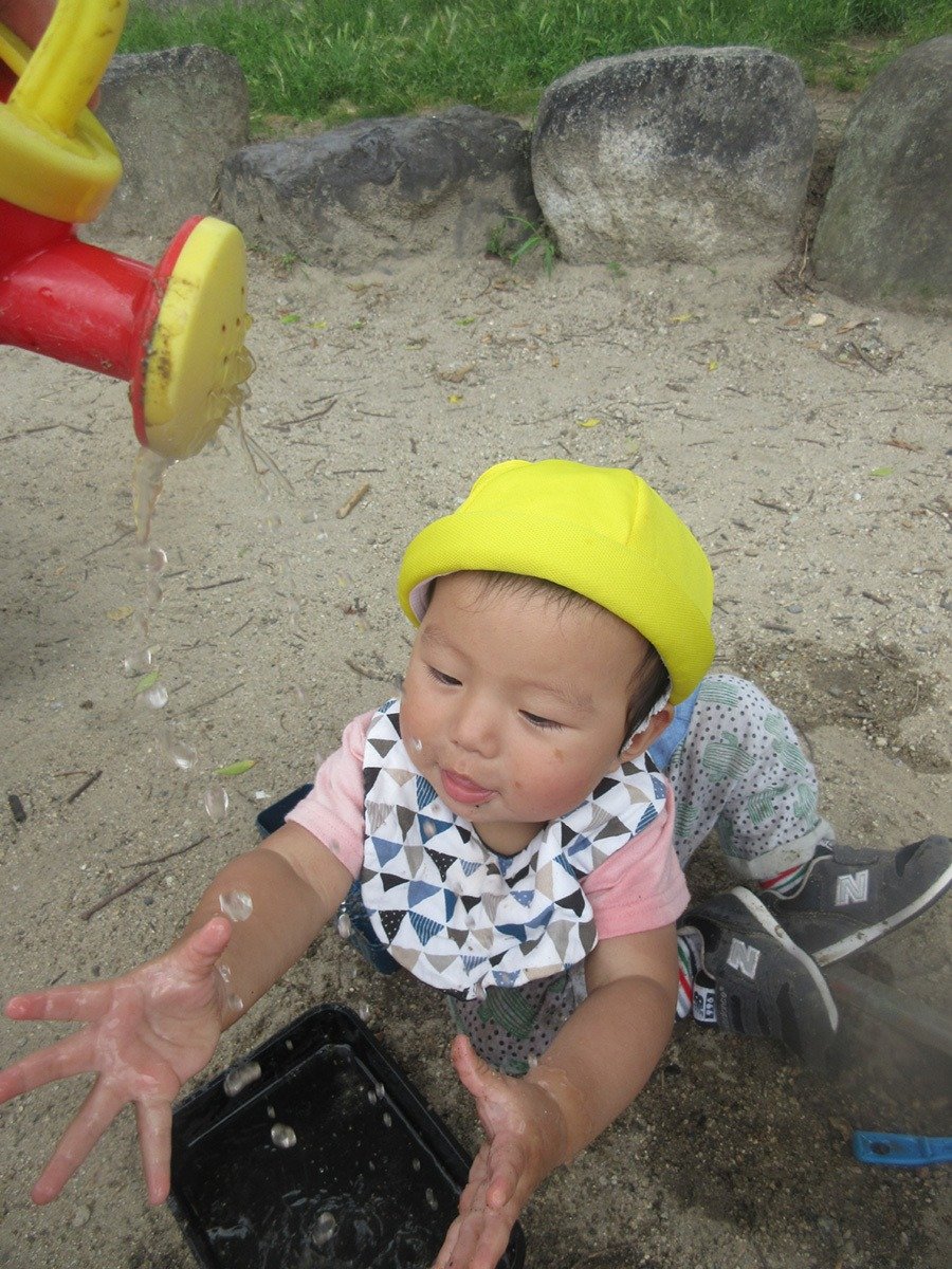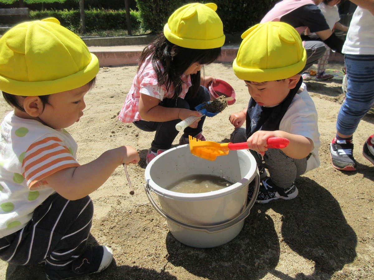 公園に着くとバケツを持って「お水入れて」「お手伝いする!」と水遊び、泥んこ遊びの準備をしてくれます。