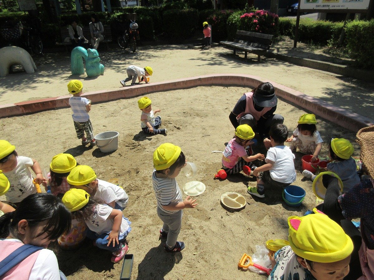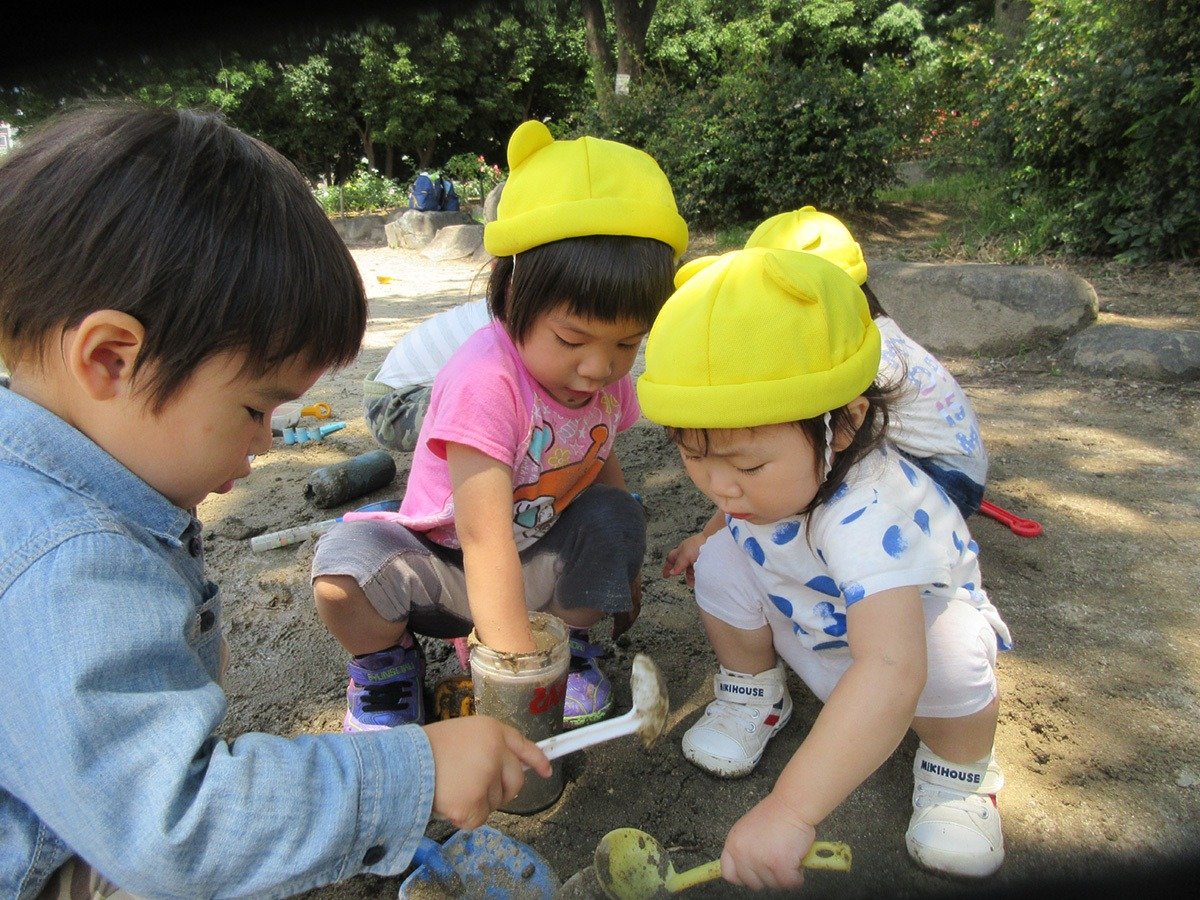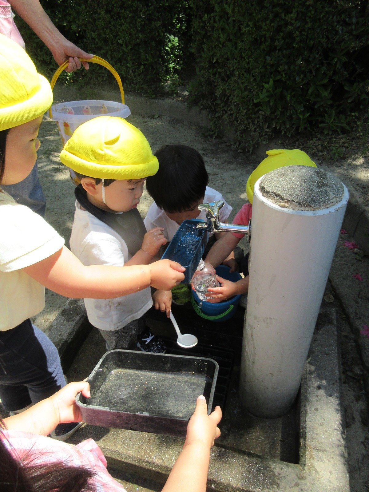 公園に着くとバケツを持って「お水入れて」「お手伝いする!」と水遊び、泥んこ遊びの準備をしてくれます。