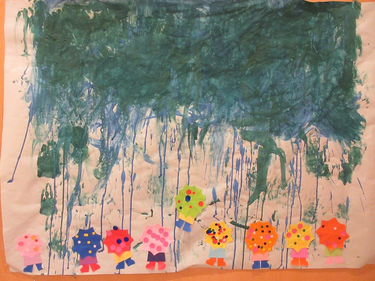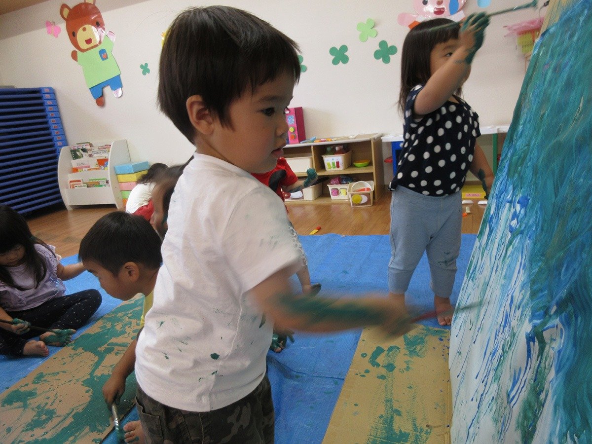 保育園の玄関に貼ってあるので、くま組のかわいい画家さん達の作品を見てあげてくださいね。