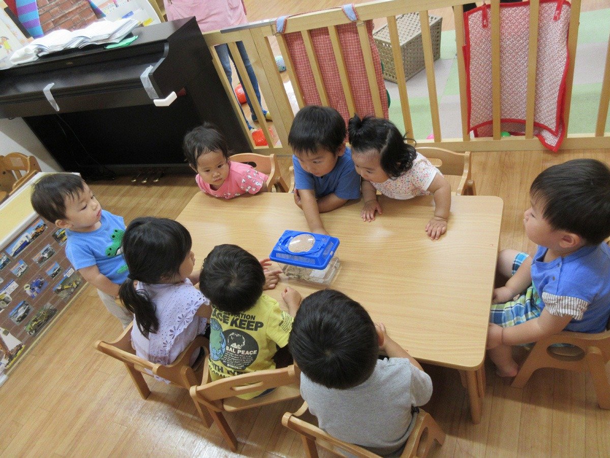 小さなお友達はお客様が来ると「なになに?」と集まって興味津々