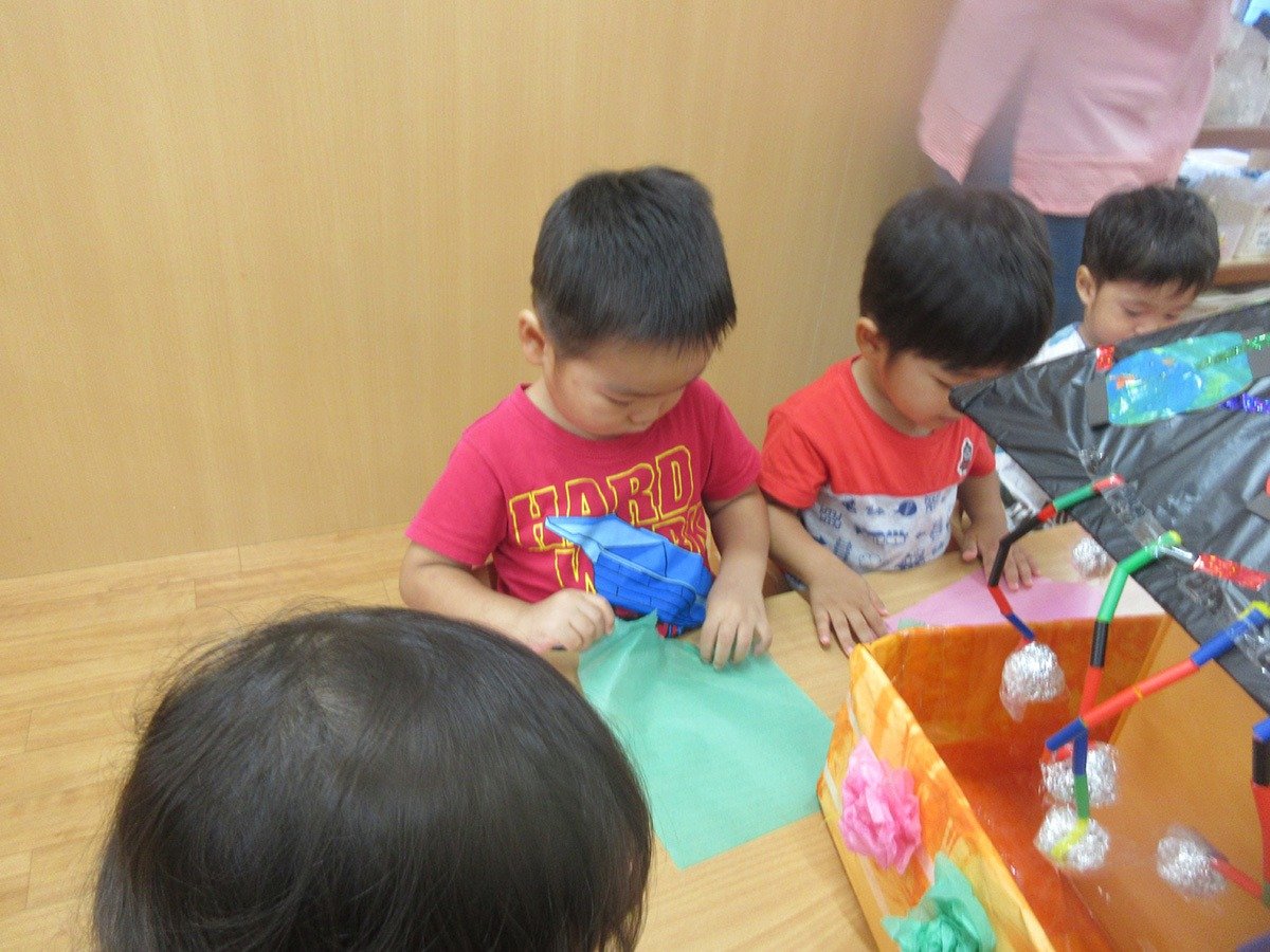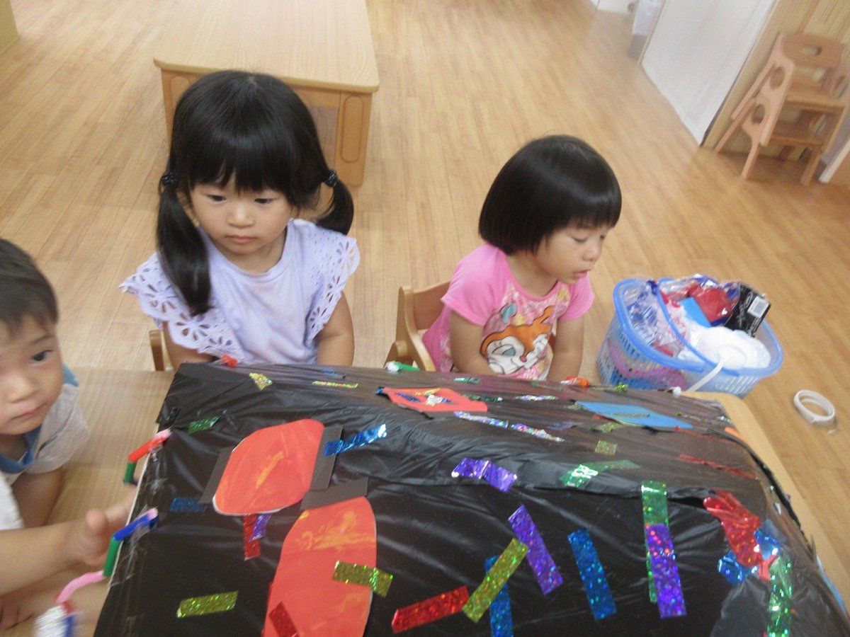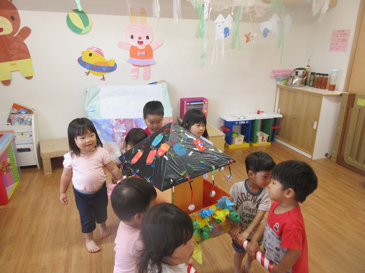 七夕の飾りも用意して保育室は、とっても賑やかになっていました。