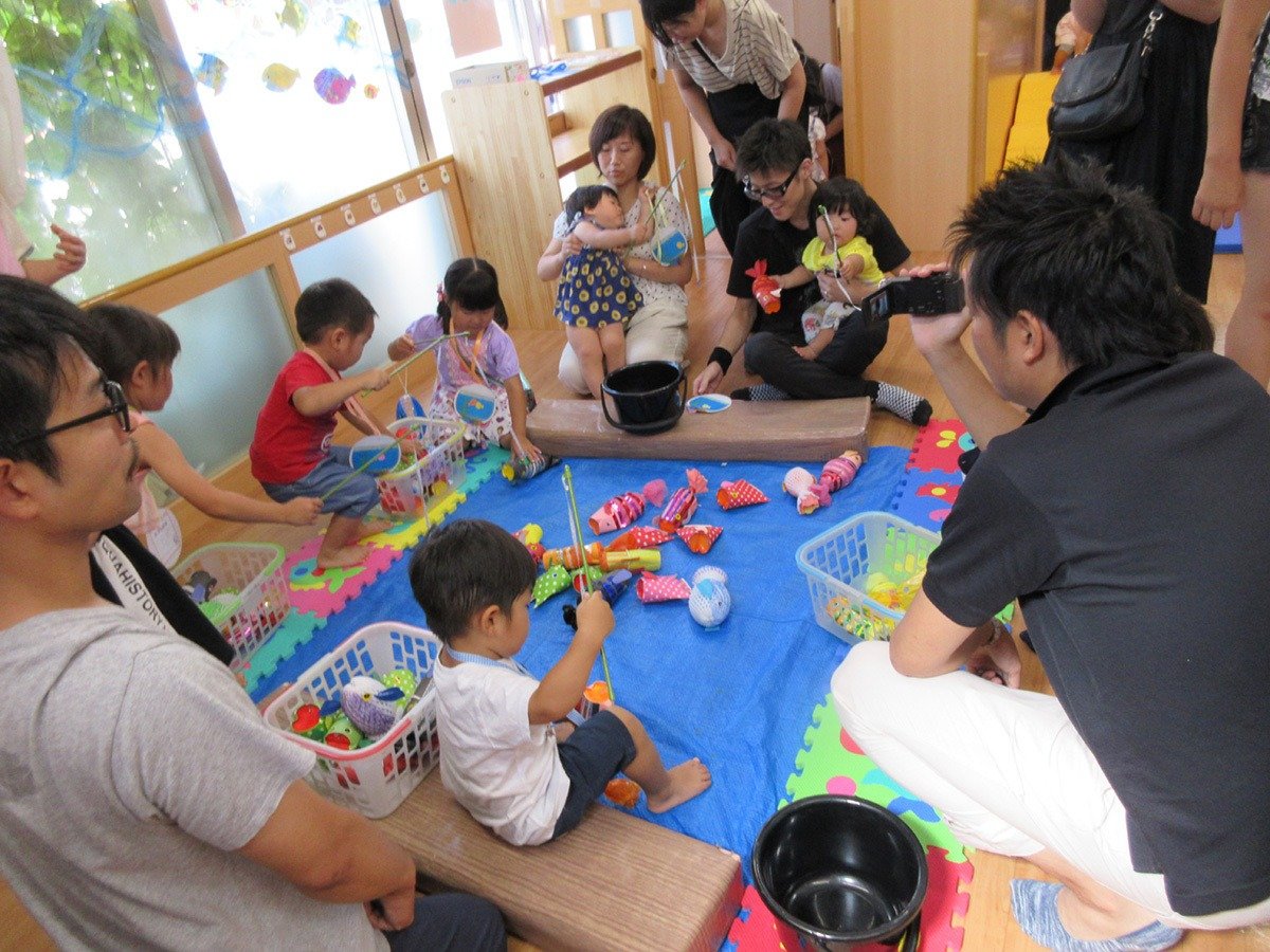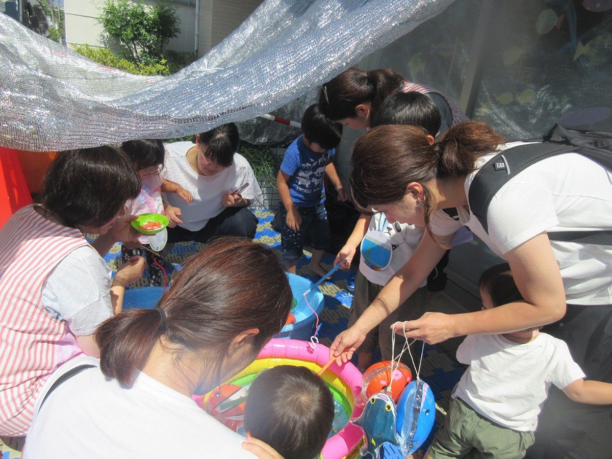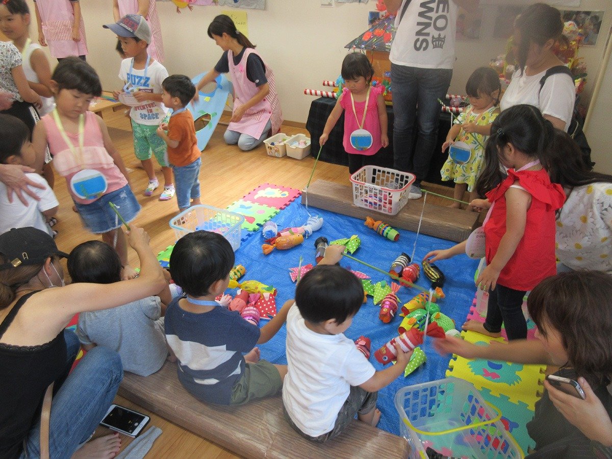 滑り台コーナーや感触を楽しめるコーナー、ヨーヨーや魚釣りなどの