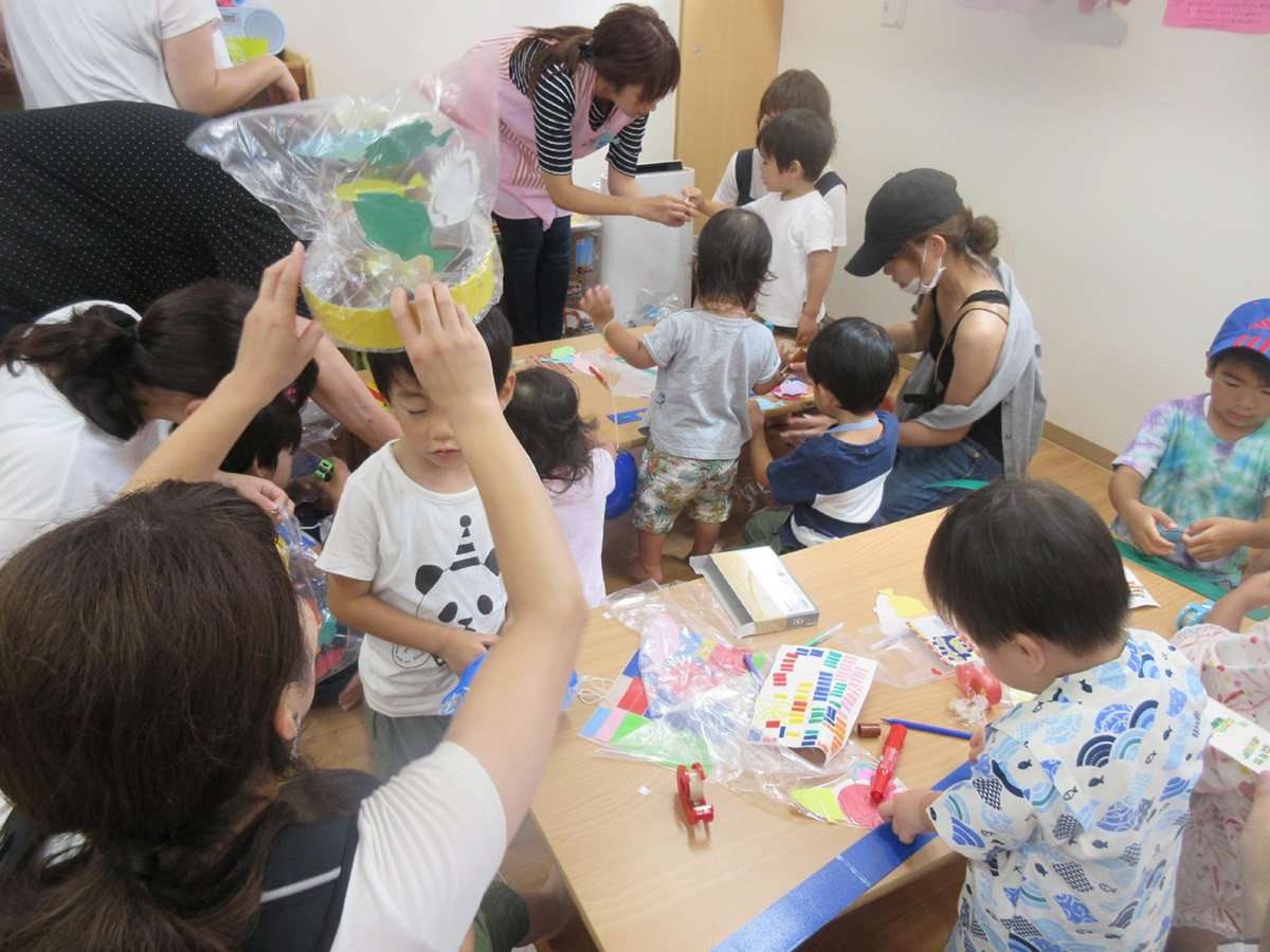 大雨の中、持ち帰りが大変だったと思いますが、親子で笹飾りを一緒に飾ったこと、