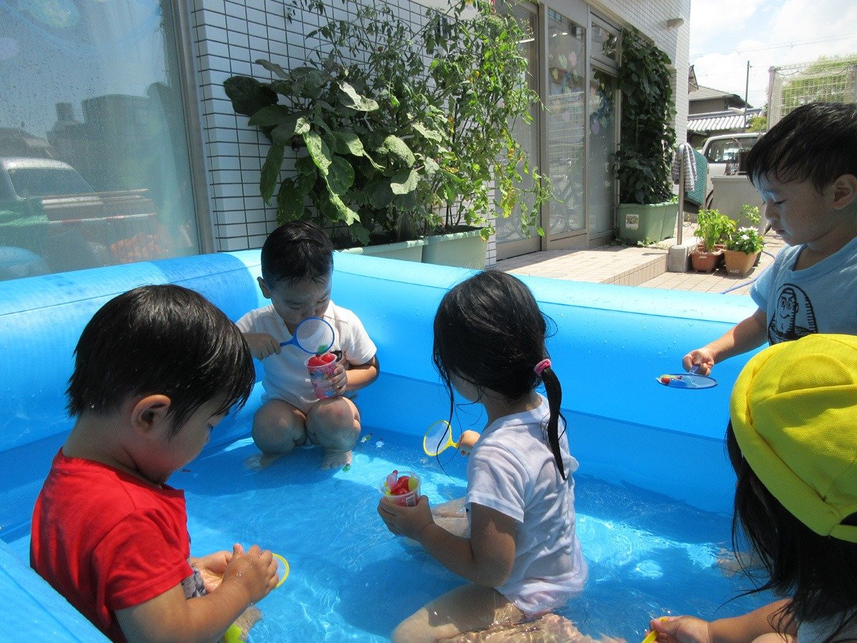 金魚すくい・色水遊び・石鹸遊びもみんなとっても楽しそうです。