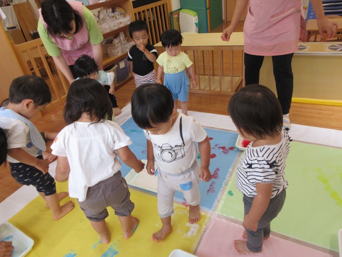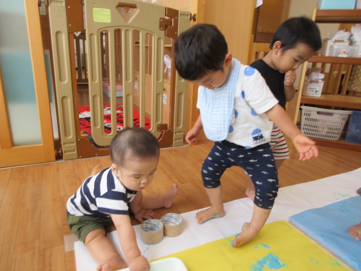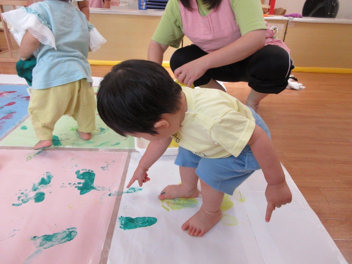 足の裏に絵の具をヌリヌリしてペッタンしてみています。