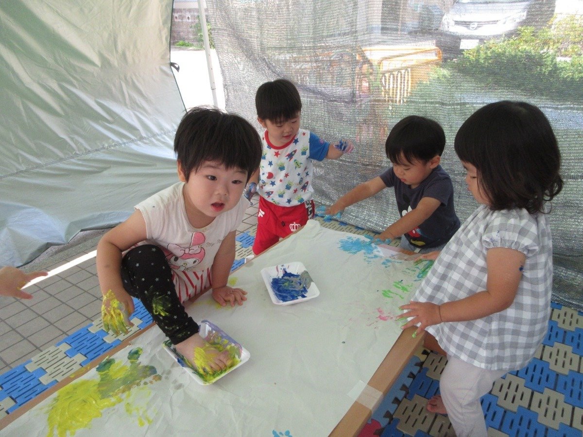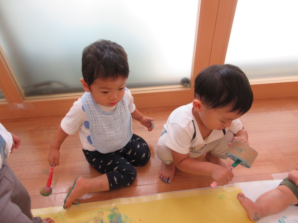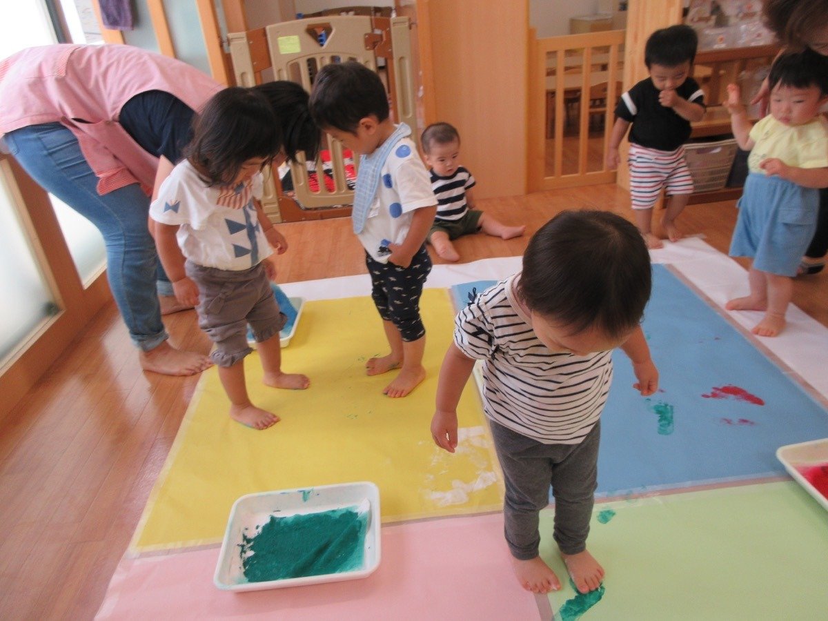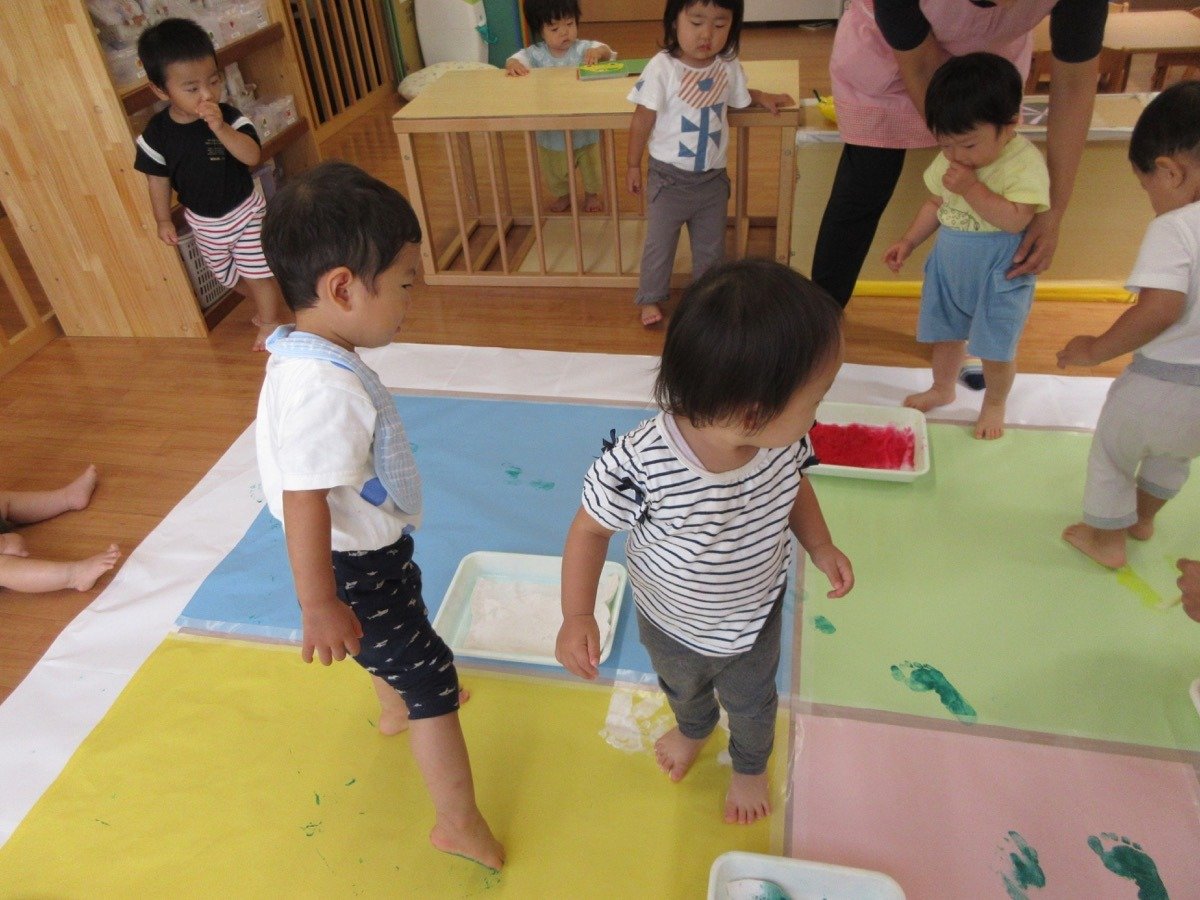 足の裏に絵の具をヌリヌリしてペッタンしてみています。