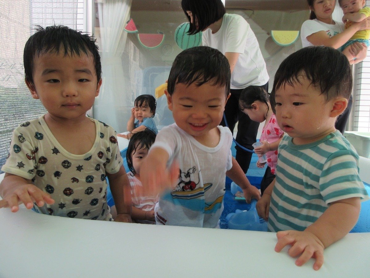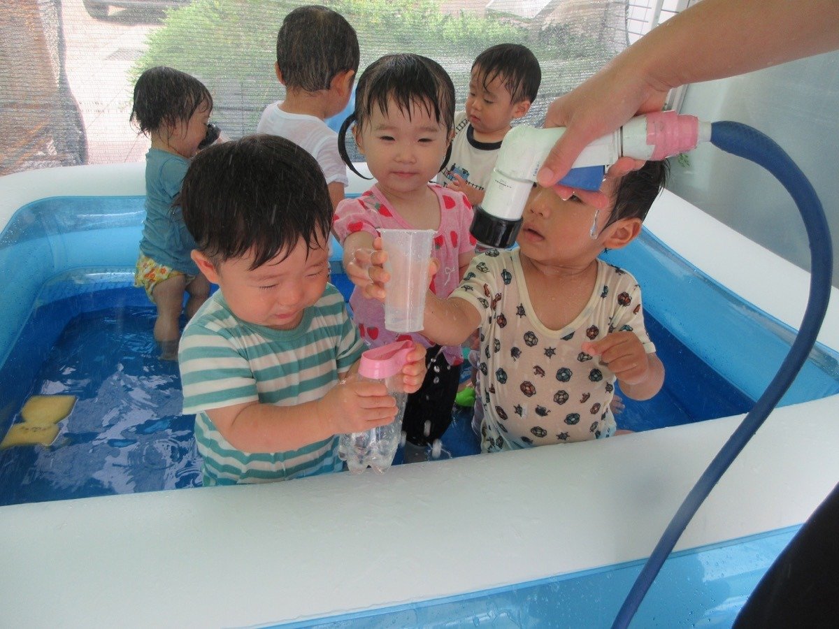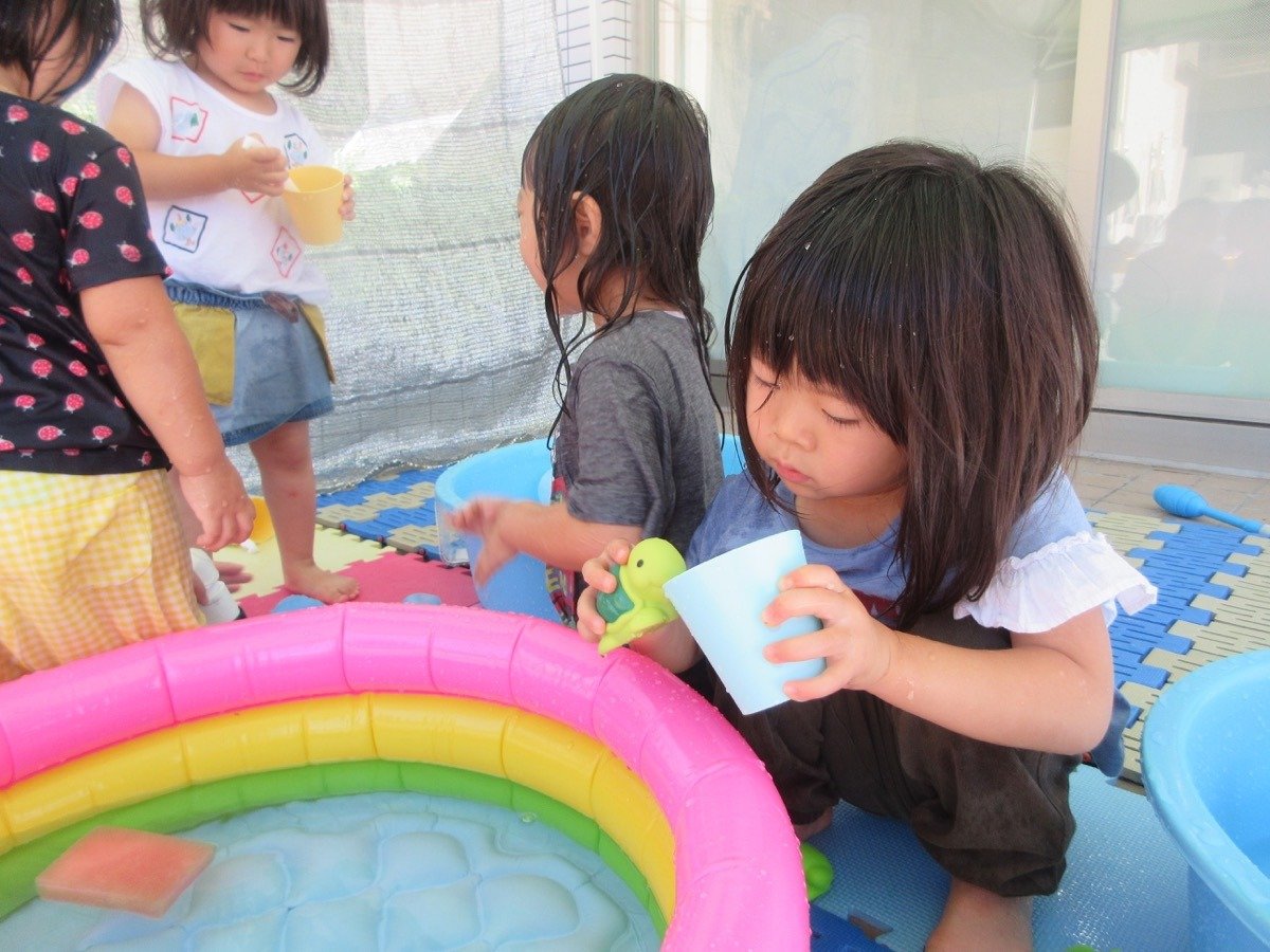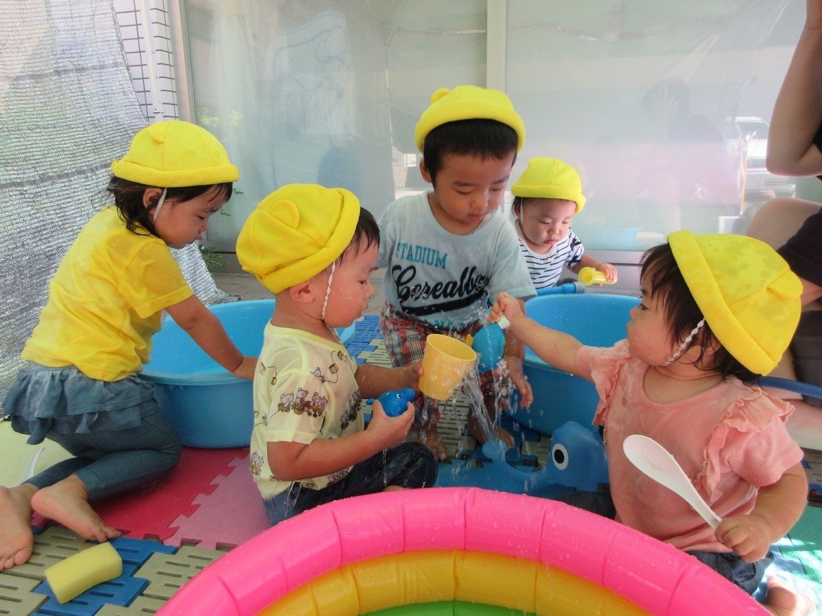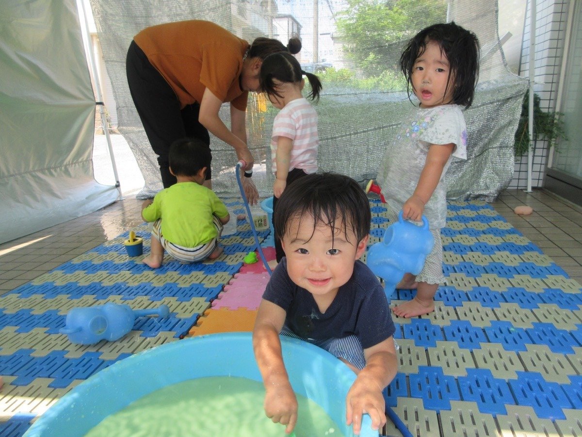 お水遊びが大好きなお星さまグループのお友達。ぞうさんジョウロから