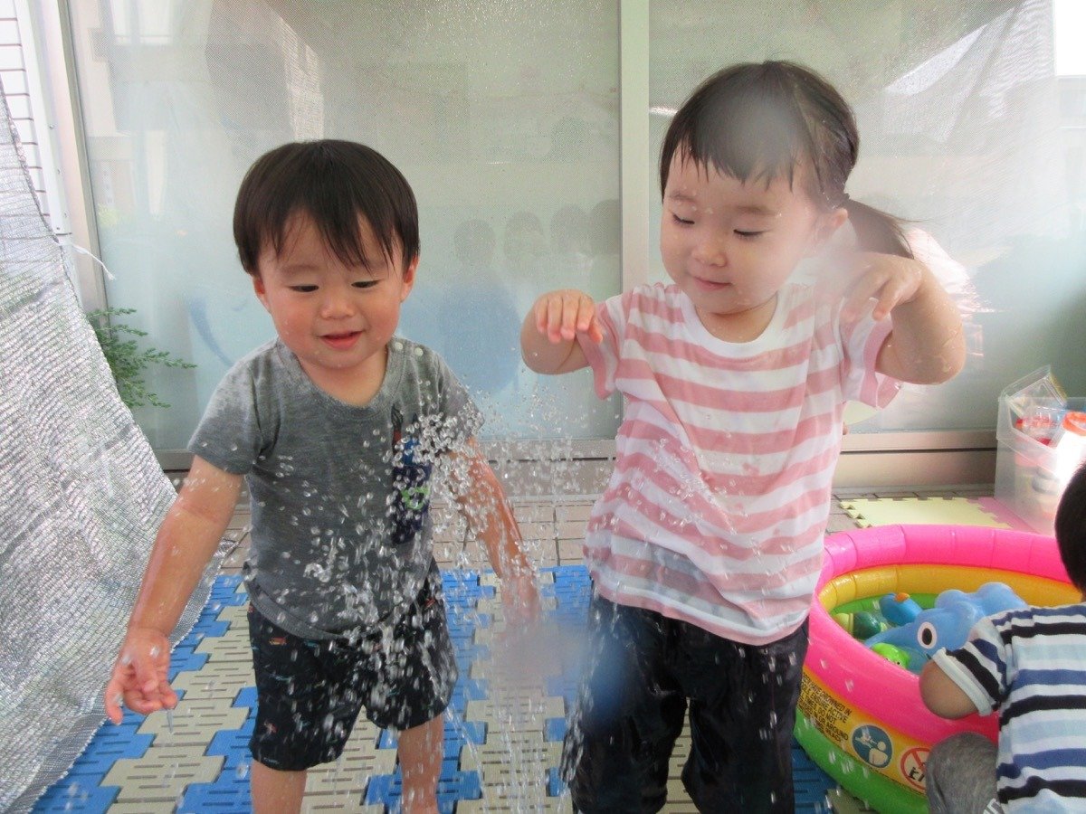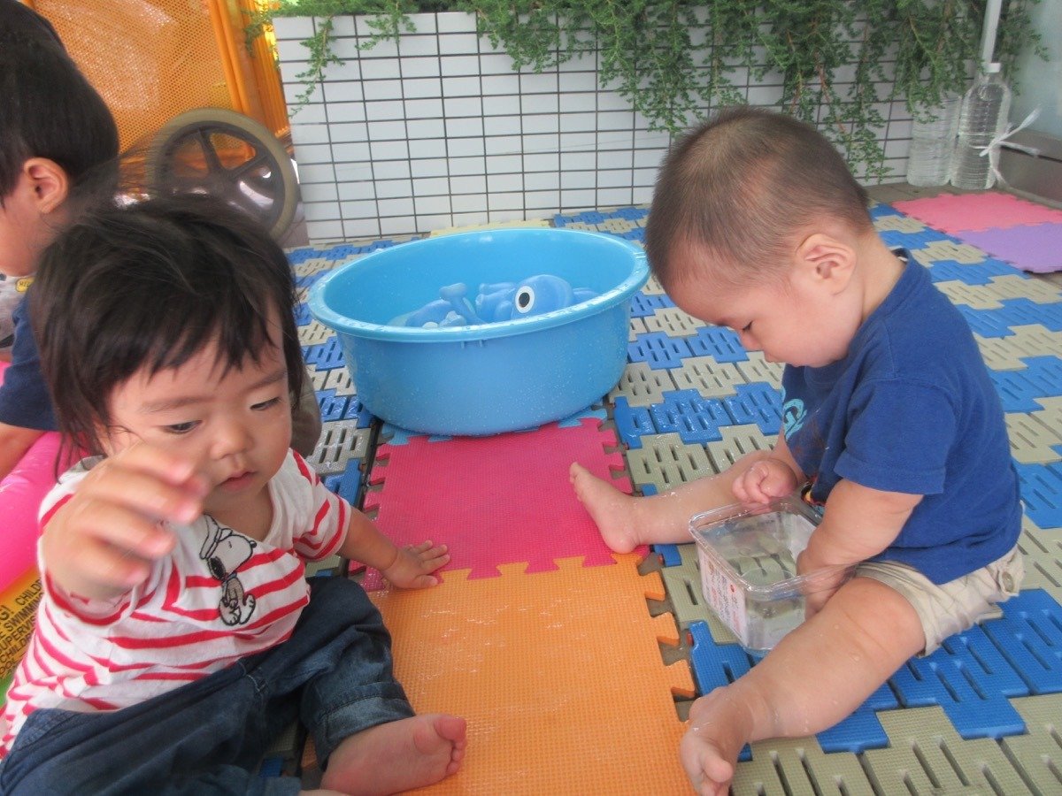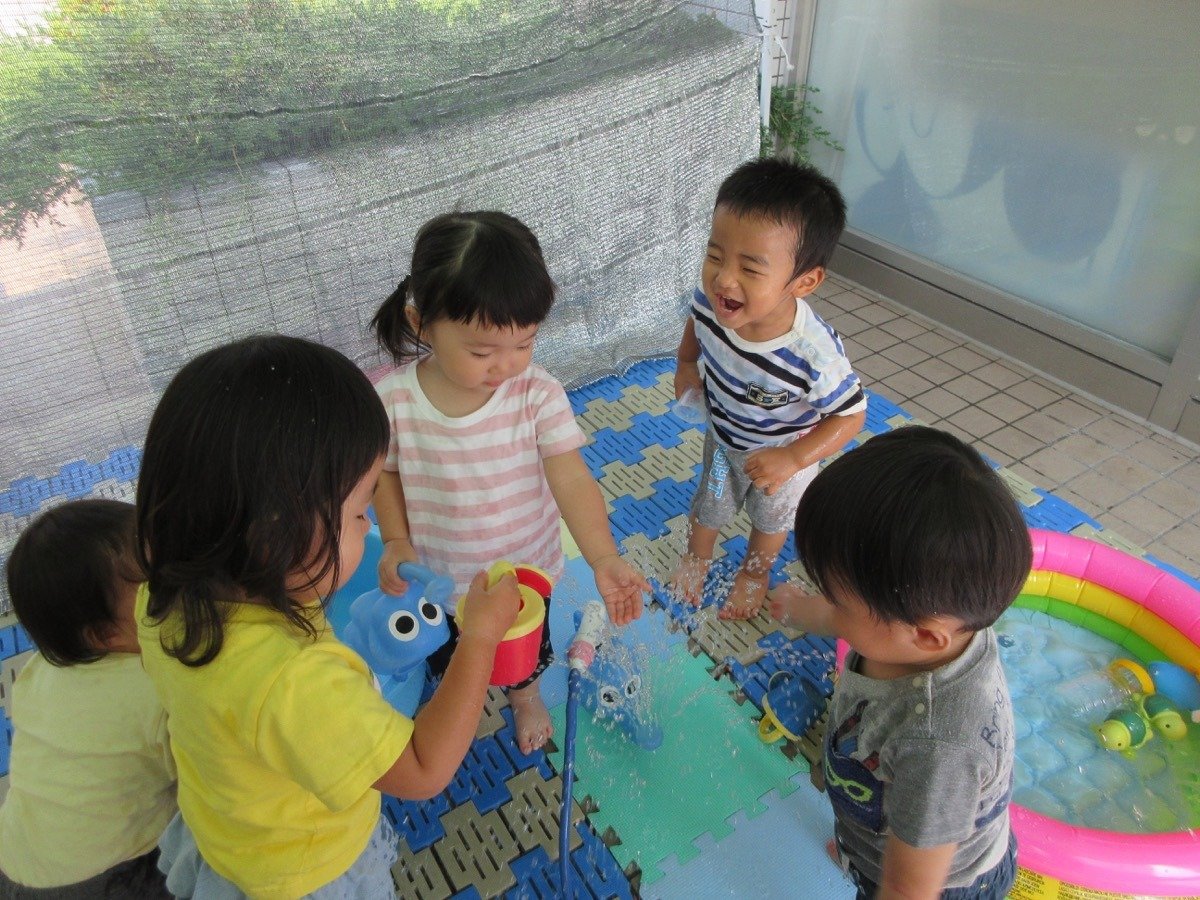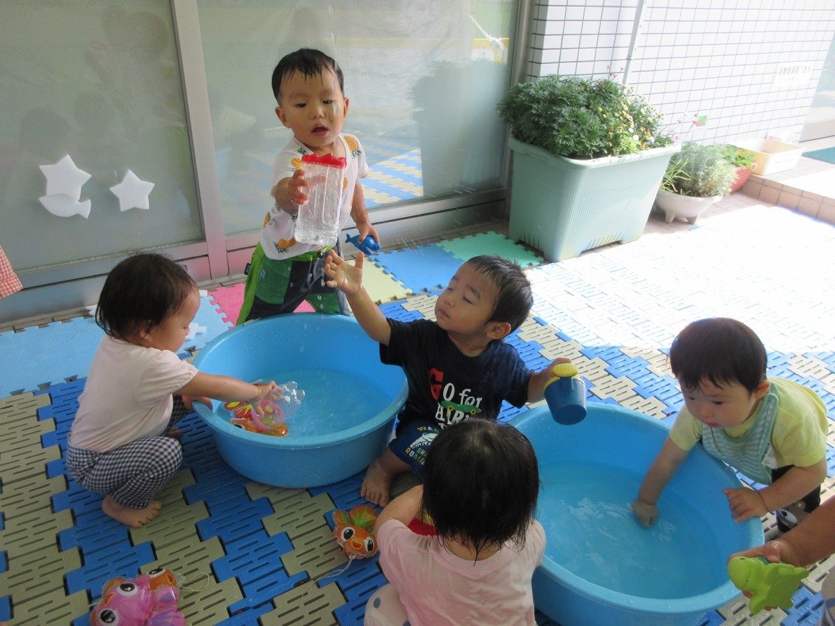 お水遊びが大好きなお星さまグループのお友達。ぞうさんジョウロから