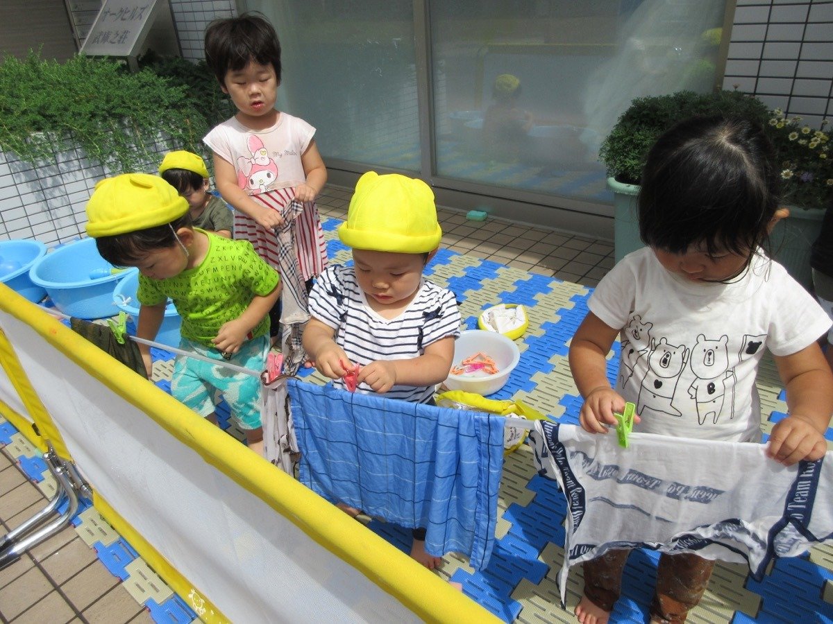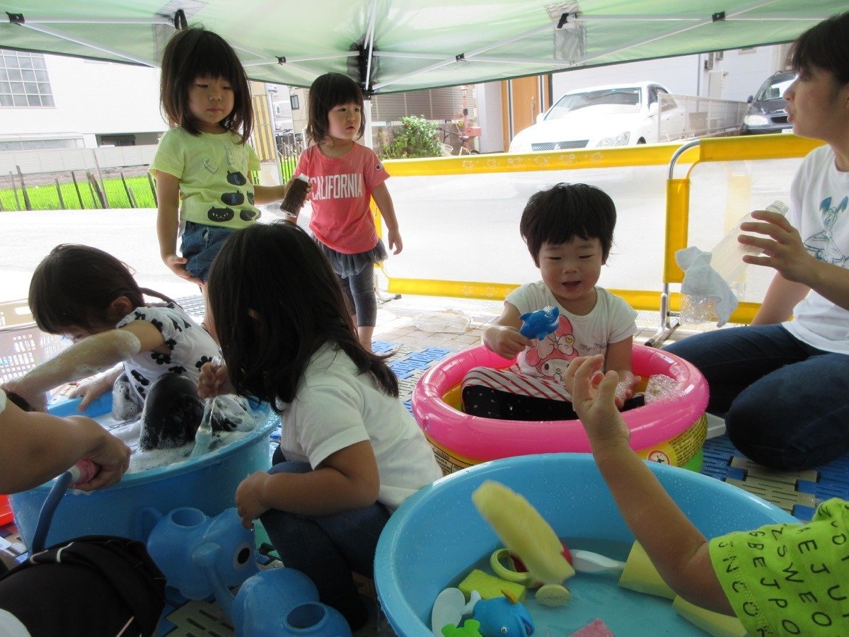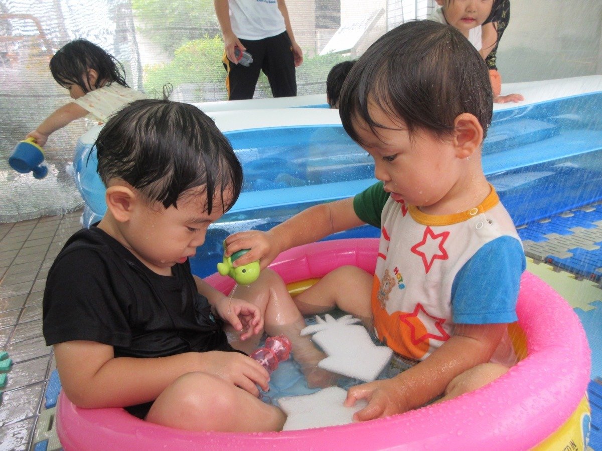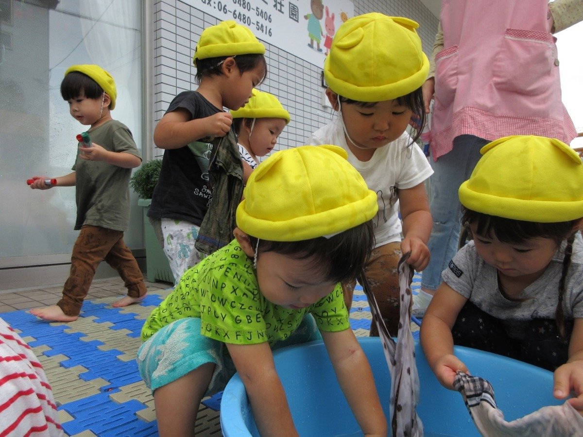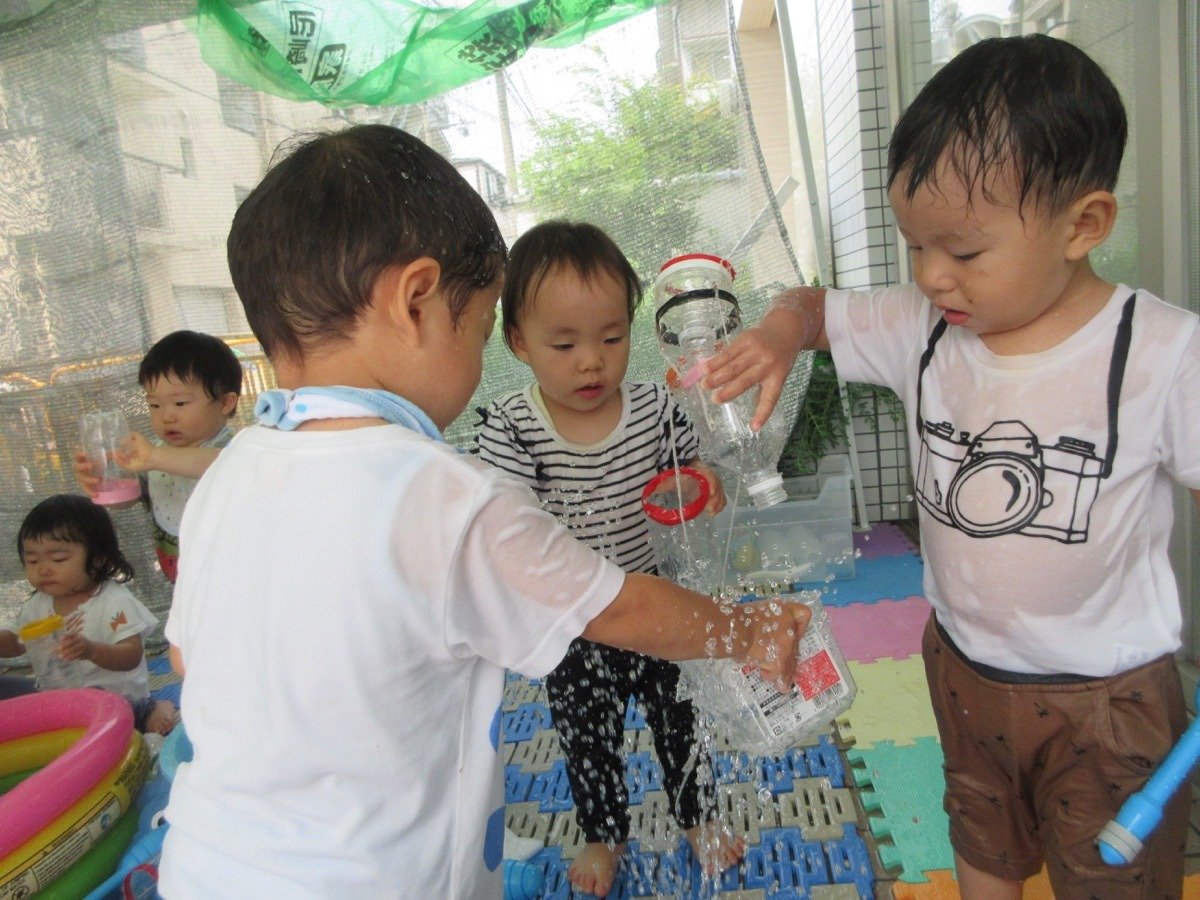 お水遊びが大好きなお星さまグループのお友達。ぞうさんジョウロから