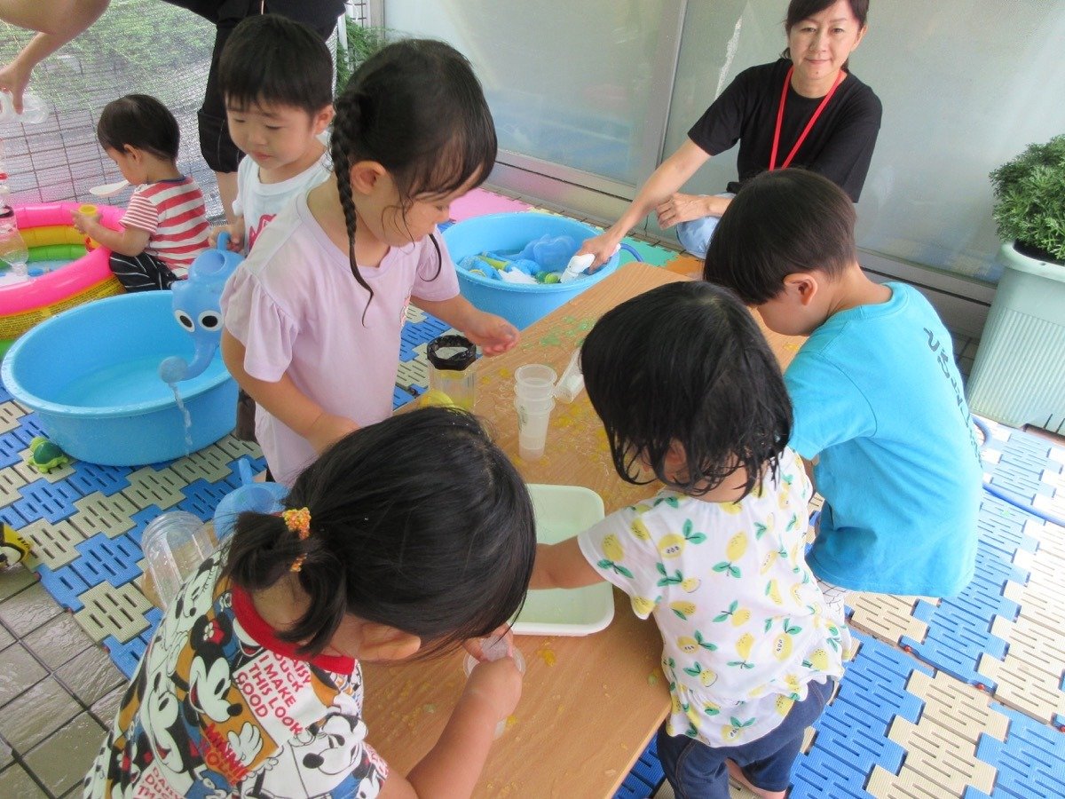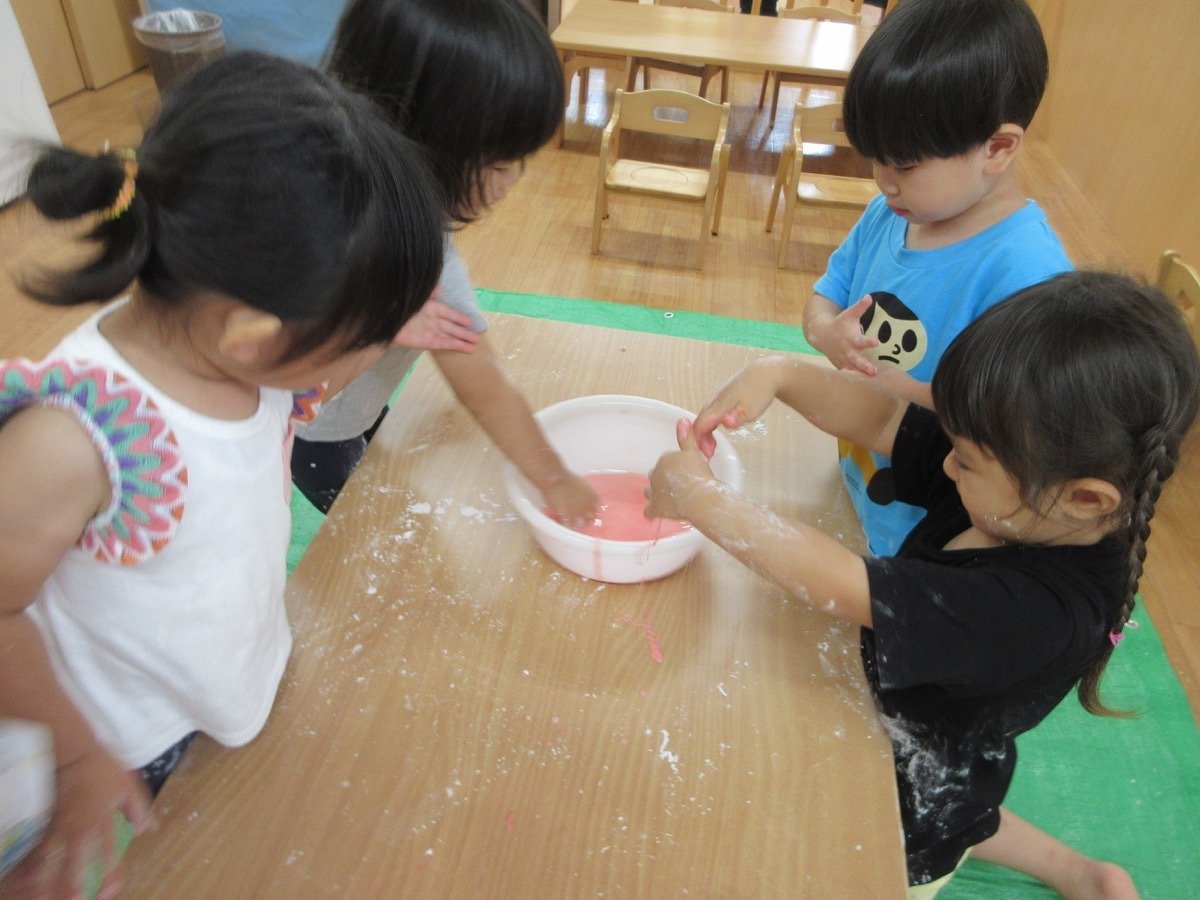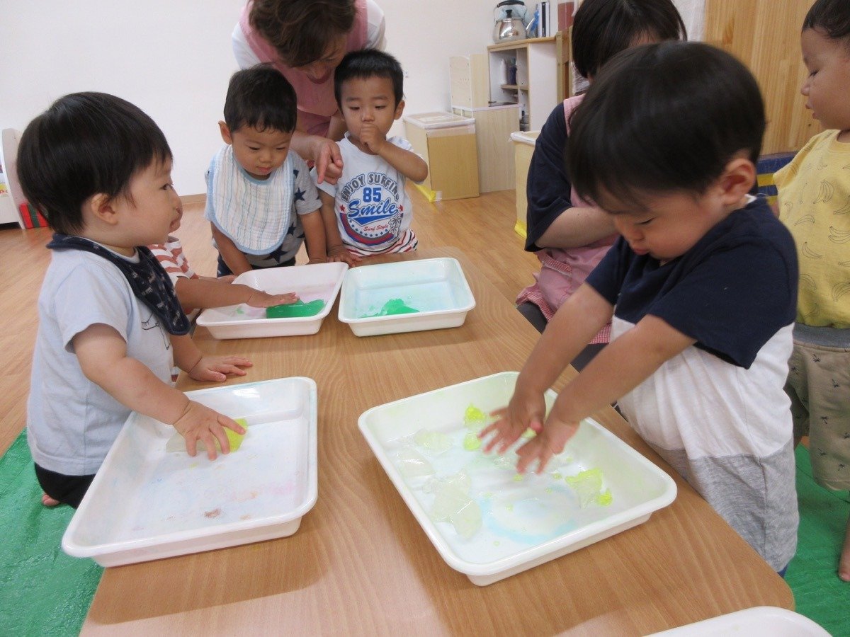 きれいな色が混ざっていきました。「つめたーい」と言いながら