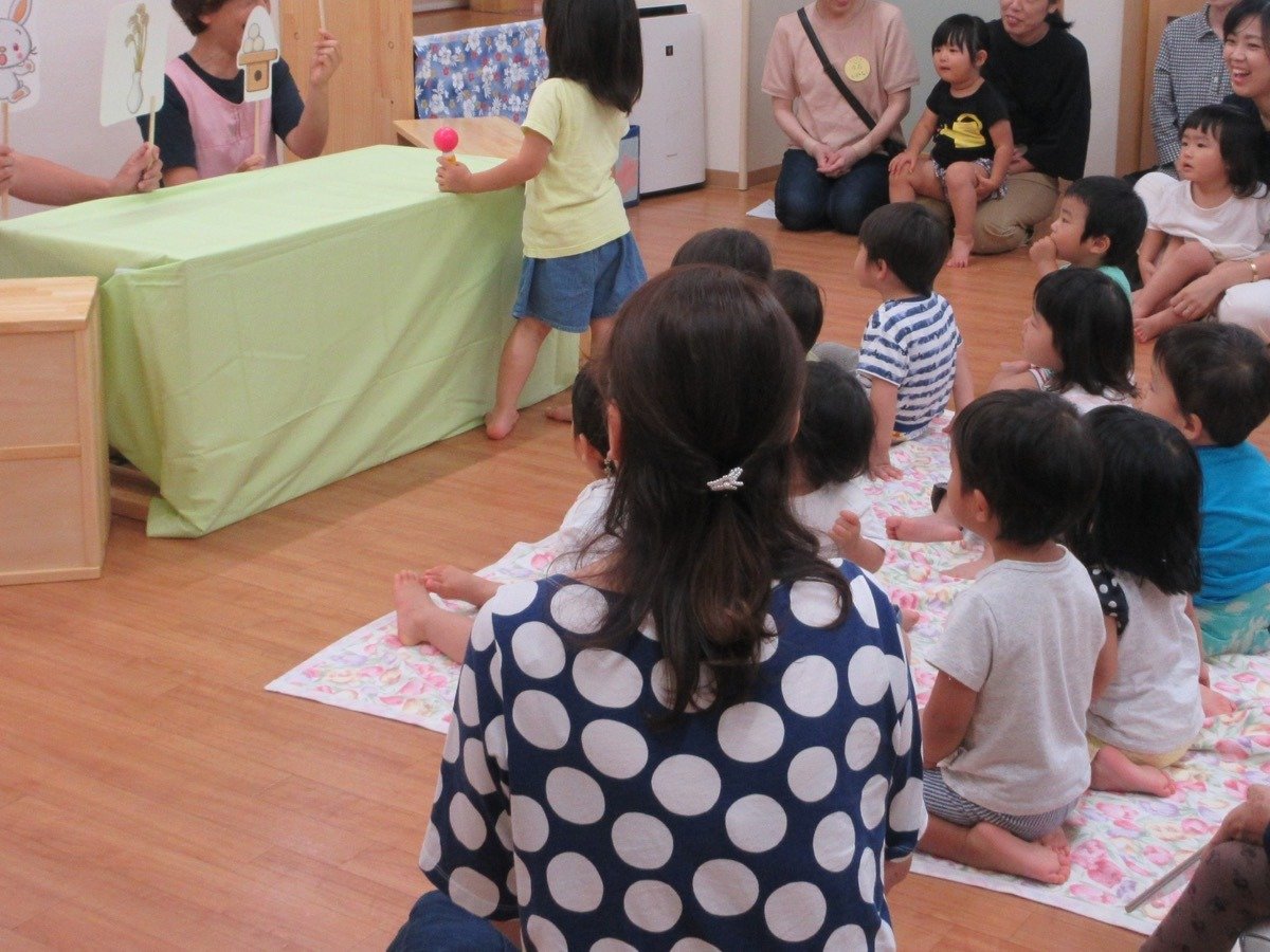 手遊びや、ペープサートで喜ぶ子ども達の姿に、クスッと笑えて