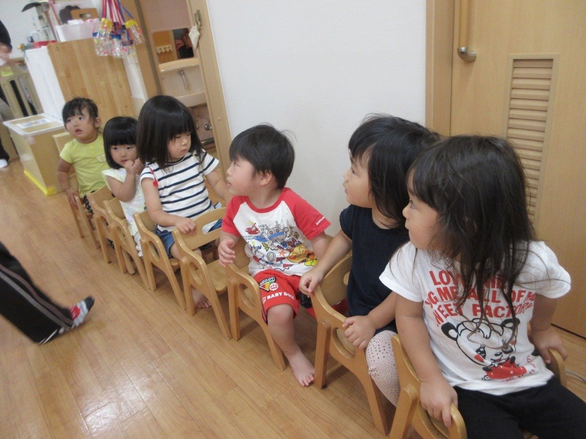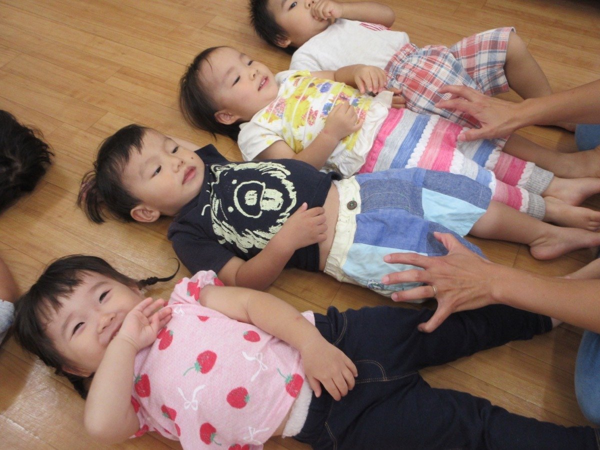 空いている先生のお膝にちょこんと座ります。お膝にのせてもらって ゆらゆら