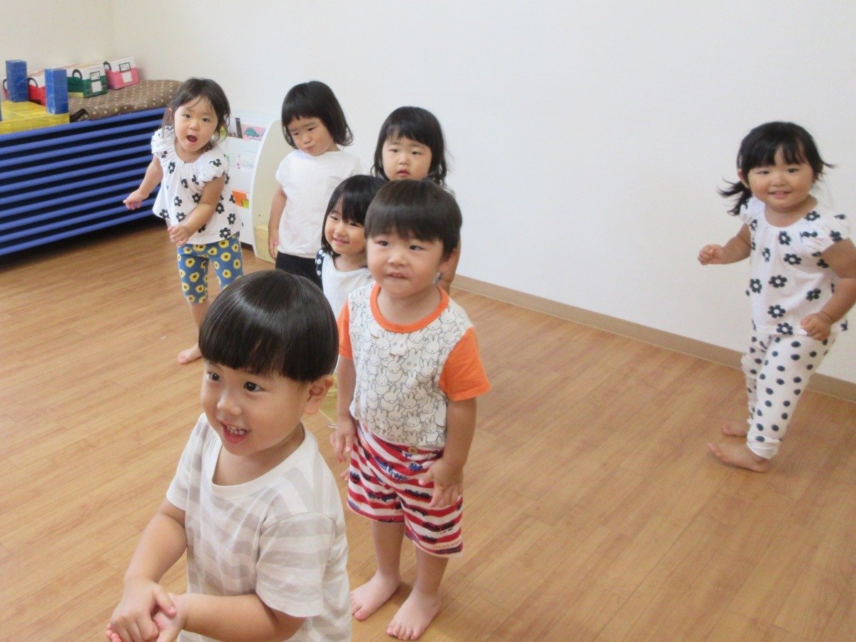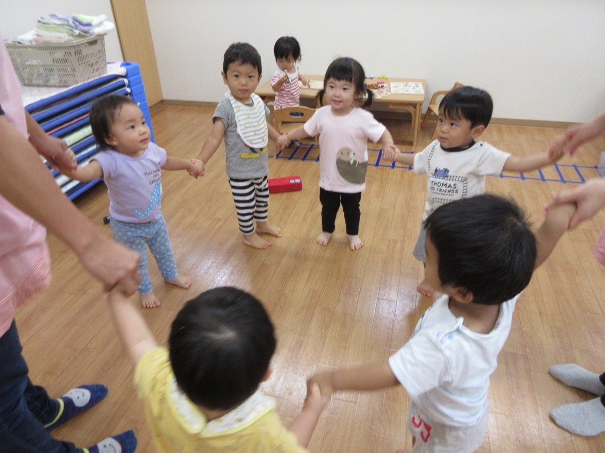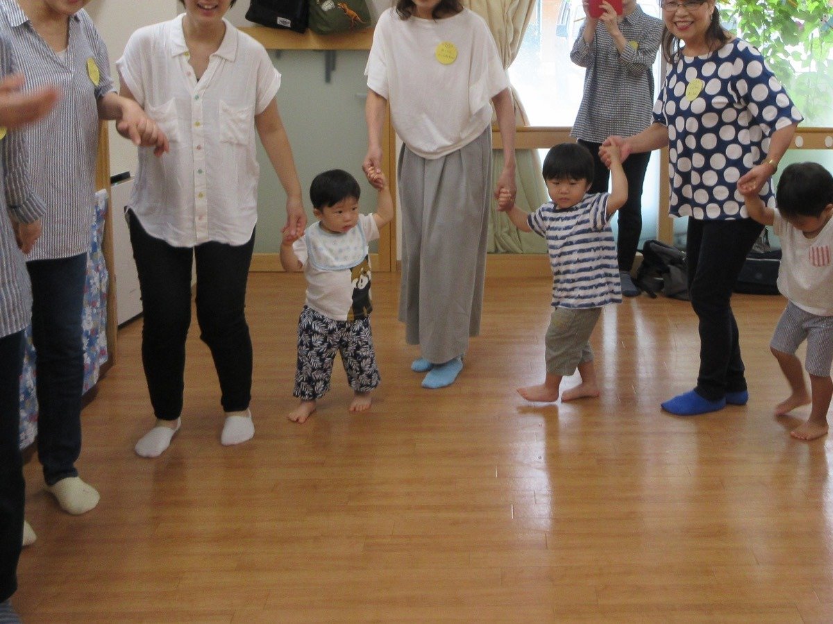 手を繋いで大きな円になると、みんなのお顔が見えて楽しさが増しますね。