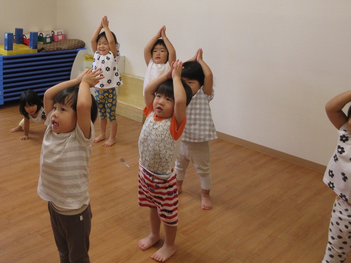 おほしさまグループは、お月様を見てピョンピョン跳ねるうさぎさんが。