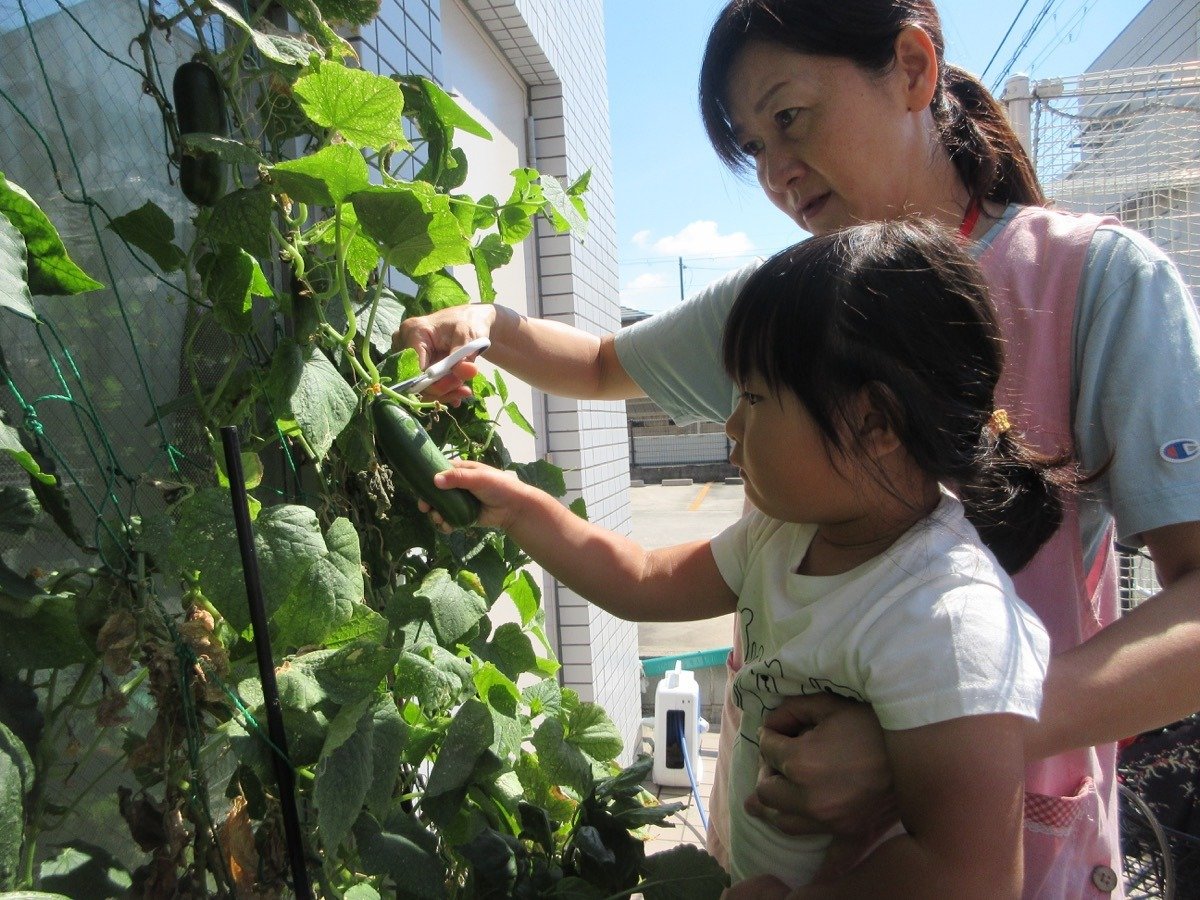 プランターで育てたキュウリは、太陽グループさんが種まきをしたミニキュウリなので、