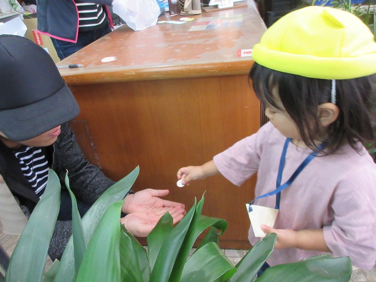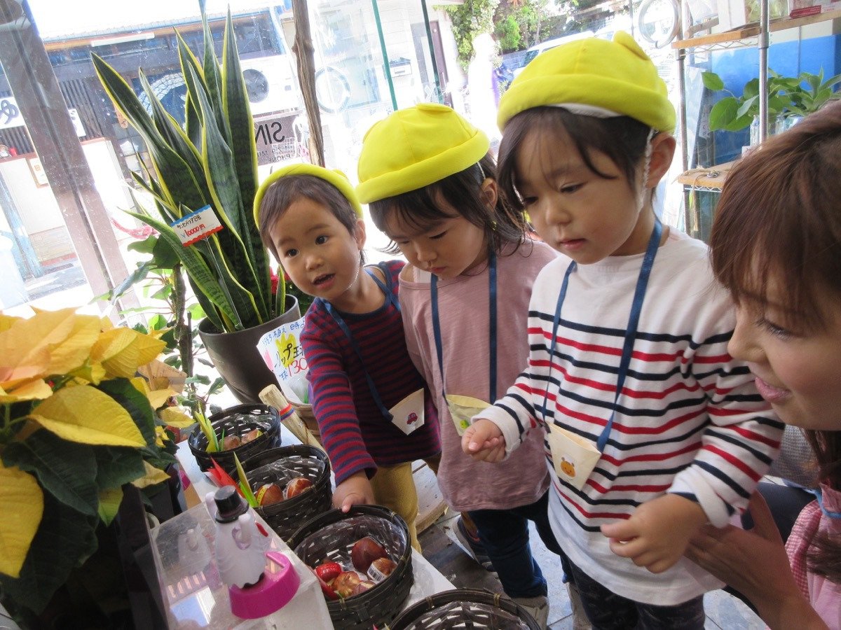 お花屋さんの入り口には、『きらきら保育園のお友達いらっしゃいませ』