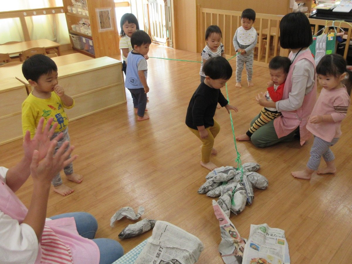 16日(土)は、さつま芋掘りをしたお芋を使って、くまぐみさんが