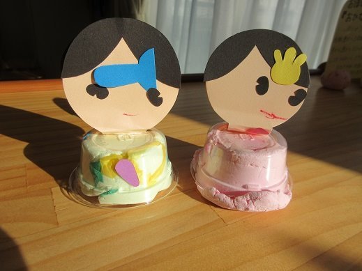 今日は、自分で作ったおひな様をもちかえり。