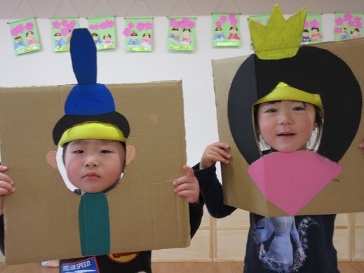 先生が「おひな様のお祭りはね、女の子のお祝いで、元気に可愛く育って