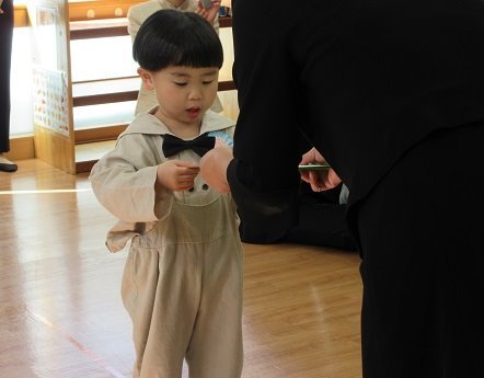 新型コロナウイルス感染症の影響で、マスクを着用してもらい、卒園式がはじまりはじまり~♪