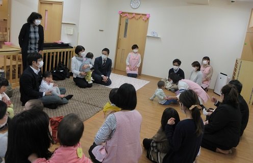 新型コロナウイルス感染症予防のため、入園式が行えるか心配していましたが、マスクの着用をお願いして