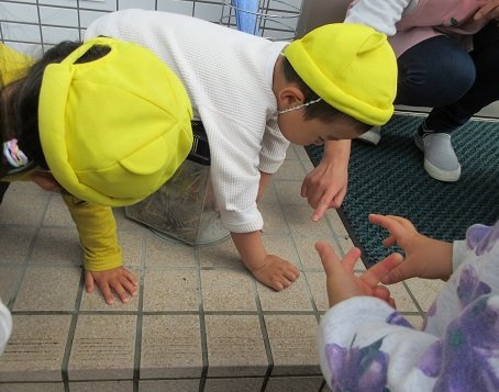 ♪ね~ずみね~ずみどこいきゃ♪先生が歌い始めると、子ども達が「やってやって」と先生の前にゴローンと寝転がって