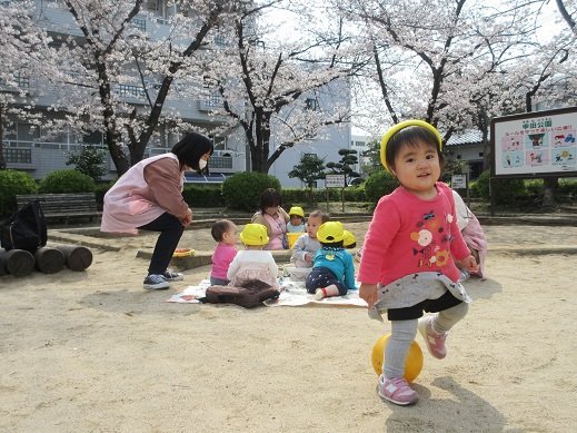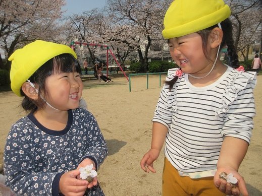 今日は、暖かくて気持ちが良いお天気。桜がとってもきれいで、落ちた花びらをたくさん集めるのも