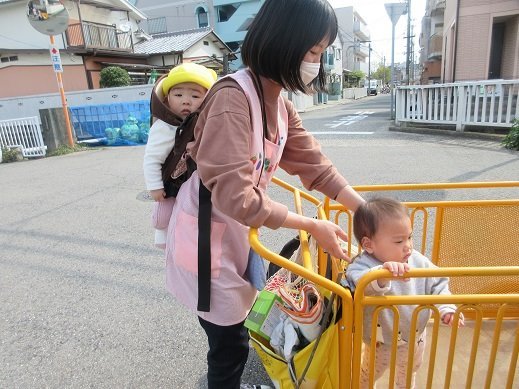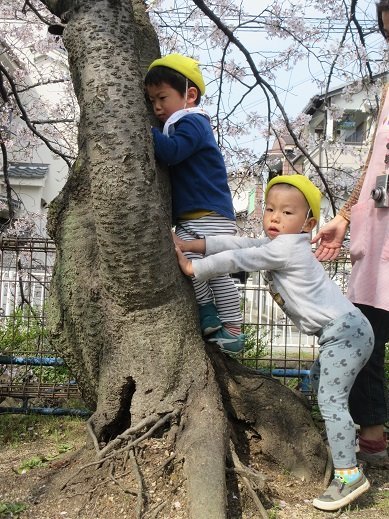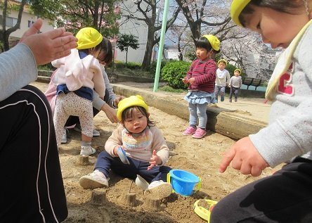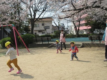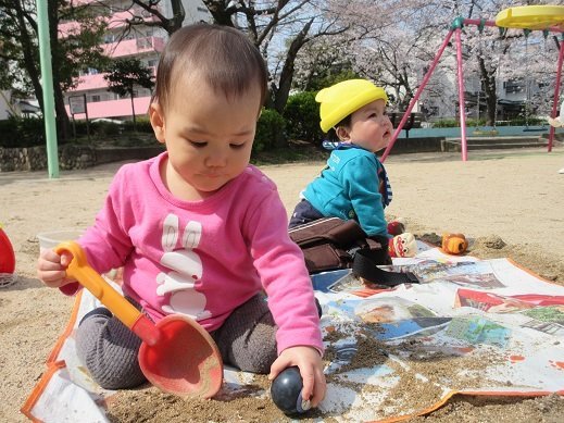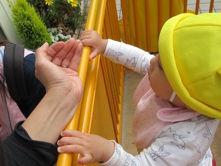 新入園児のお友達は、パパママがバイバイしちゃうと「え~~~ん」と涙をぽろぽろ。