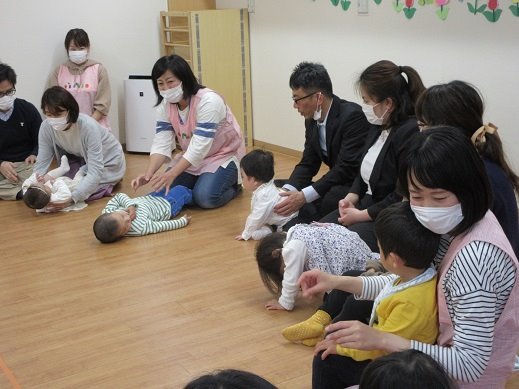 そのあとは、保育園で人気のわらべ歌遊びをみんなで楽しみました。