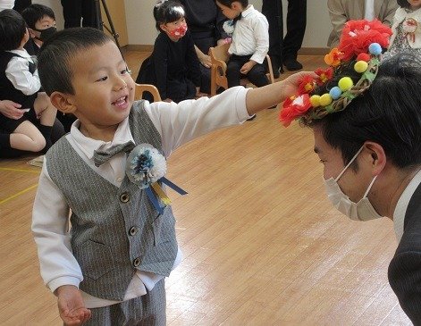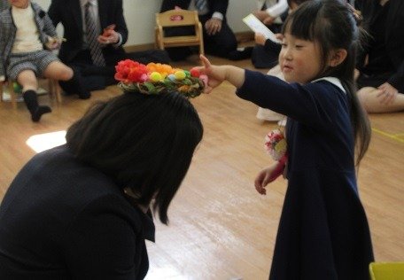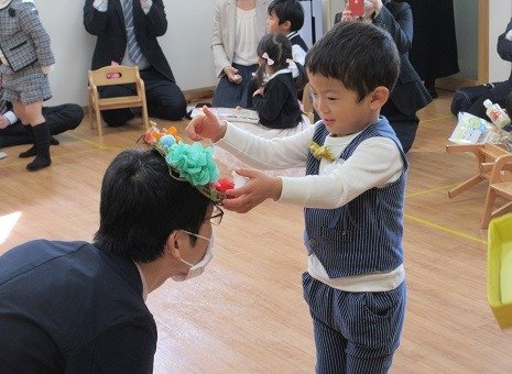 かわいいかんむりをかぶせてもらって、ちょっぴり緊張気味だったね。でも、指で3とか2とか1とか教えてくれたよね。