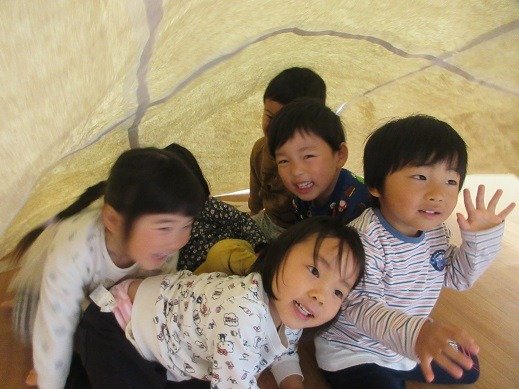 くま組さんもみんな仲良し。今日(5日)は卒園遠足の予定でしたが、あいにくの雨…。でもね…。