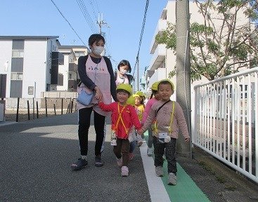 記念撮影 パチリ☆さぁ、保育園まで元気いっぱい歩くよー!