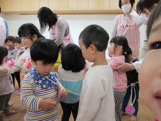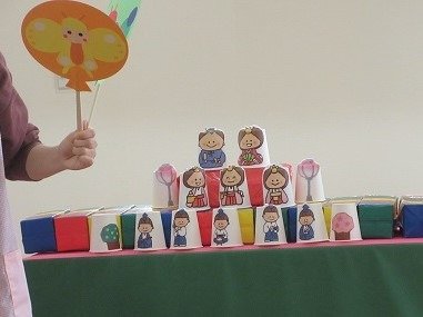 みんなが作ったおひな様を紹介してもらったり、歌に合わせて紙コップで作ったおひな様が完成したりと盛沢山♪