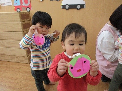 今日はひなまつり。この間から、顔はめパネルを使って遊んでいた星グループさん。似合うでしょ~♪