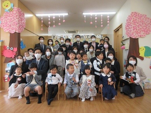 記念撮影☆みんないい笑顔。くま組さん、いつでも遊びにおいでね。あたたかく和やかな卒園式になったのも、保護者の皆様のおかげです。楽しい毎日をありがとうございました。あと3日、楽しくすごそうね。