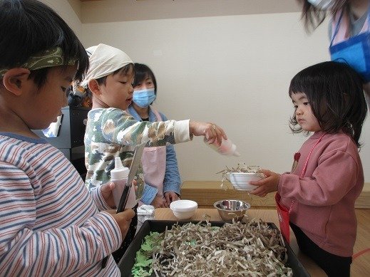 ぽりぽり ぽりぽり。お茶をゴクゴク。「おかわり~」「おかわりまだあるぅ?」ゴマの風味がよくて、子ども達にも人気のあるオヤツです。(給食のメニューはHPの給食のところからみていただけますので、見てみてくださいね。)