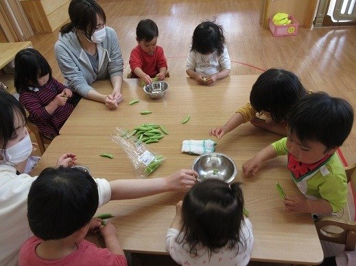 それにね、えんどう豆の皮むきのお手伝いもしてくれました。給食の先生達も大助かりです♪ありがとうね。