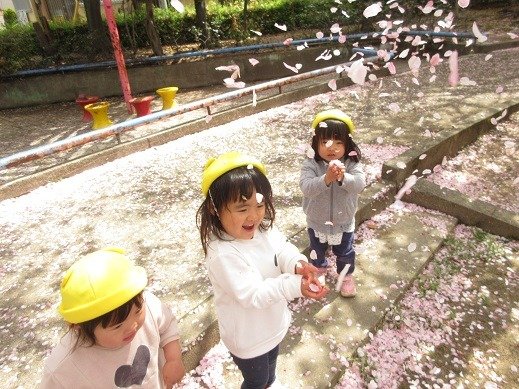 申田公園は桜が満開で、花びらいっぱい集めてひらひらひら~♪きれいだね!!