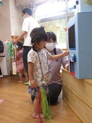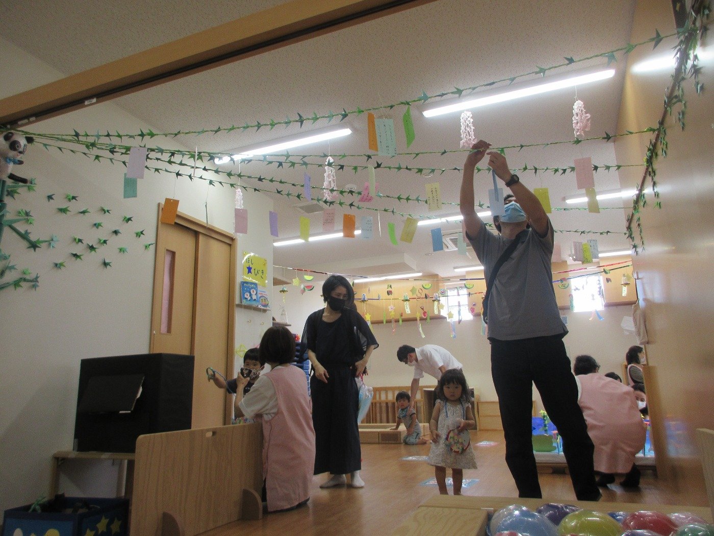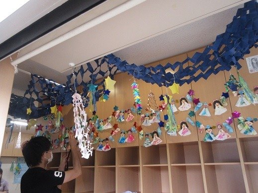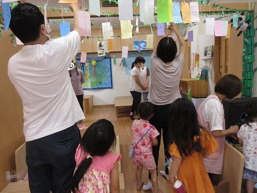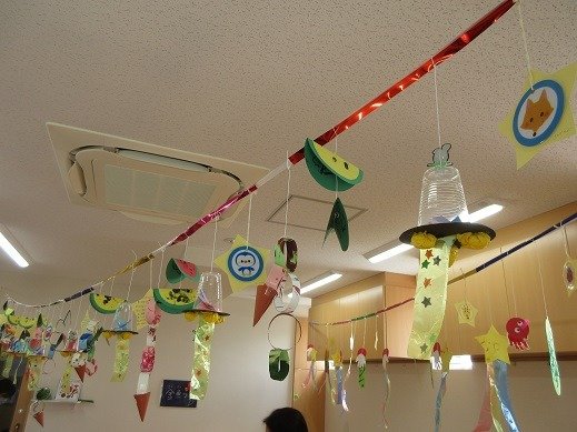 おうちの方と一緒に書いた短冊を飾って、お願い事が叶いますように!楽しい願い事や家族を思う願い事がいっぱいあって、本当に、心も体も健康で過ごしたいなぁと思いますね。