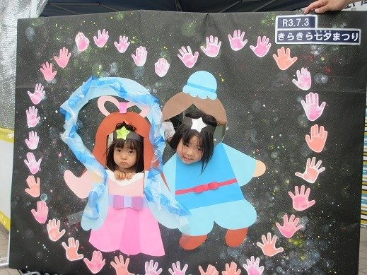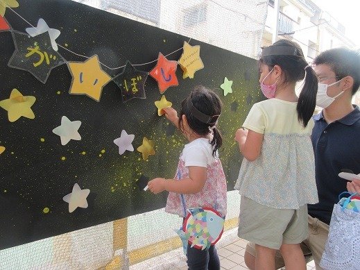 外のテントにも、願い事を言いながら、お星さまをペッタンコするコーナーがありました。みんなの願い、届くと良いね。