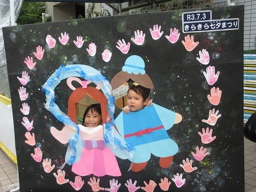 さて、7月3日は『きらきら七夕まつり』保育室は、みんなが作った七夕の飾りがきらきらゆらゆらと素敵です。お天気がよくないみたいだけれど、きっと晴れる!晴れてくれるはず!次回は、このきらきら七夕まつりの様子をお伝えしますね。