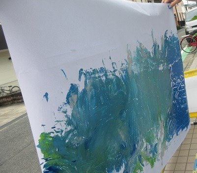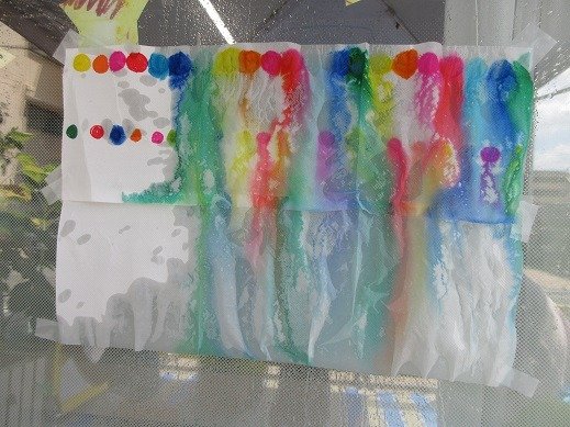 すごーいね 素敵なデカルコマニーができました。きれいな色でしょう。これはね…なにになるのかお楽しみ。