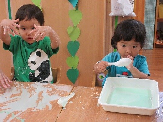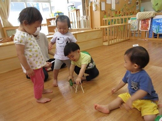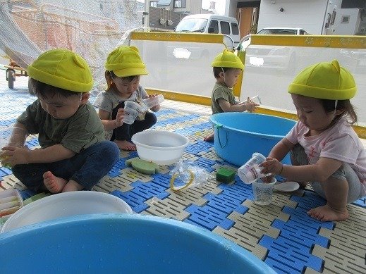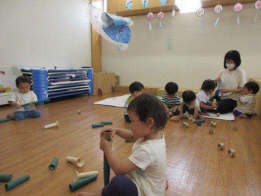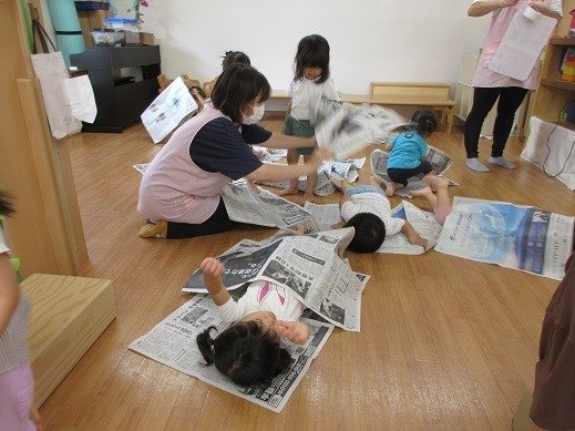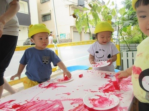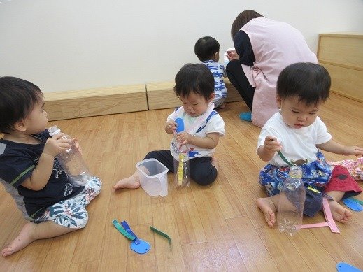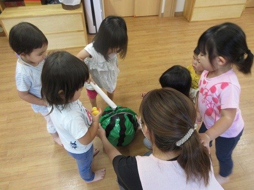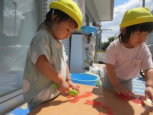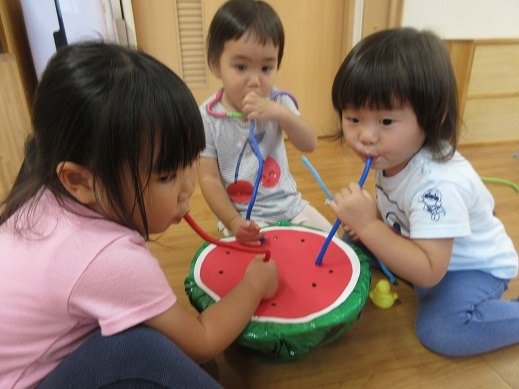 9月になりましたね。まだしばらく暑いので、水遊びを取り入れながら、秋の遊びに移行していきたいと思います。